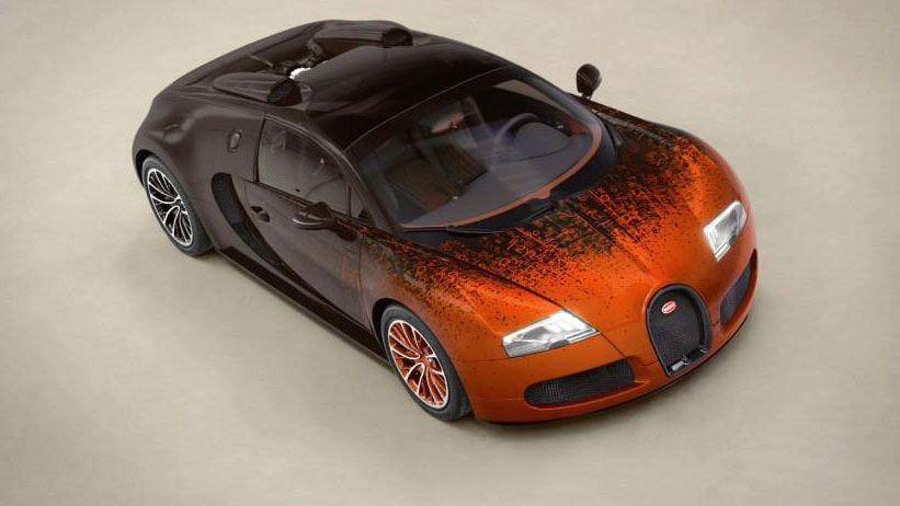Entworfen wurde das Einzelstück vom französischen Künstler Bernar Venet, ob es nach seiner Präsentation für eine aberwitzige Summe verkauft werden soll, ist derzeit nicht bekannt, darf aber angenommen werden. Sowohl innen wie auch außen durfte der Künstler Hand anlegen. Die Farben Dunkelbraun und Orange wechseln sich ab und sind gespickt mit allerlei mathematischen Formen und Zeichen. Technisch bleibt allerdings alles beim Alten. Auch den Grand Sport Venet treibt ein Achtliter-W16-Motor mit vier Turboladern und 1001 PS sowie 1250 Newtonmeter Drehmoment an. Topspeed: 407 km/h.
