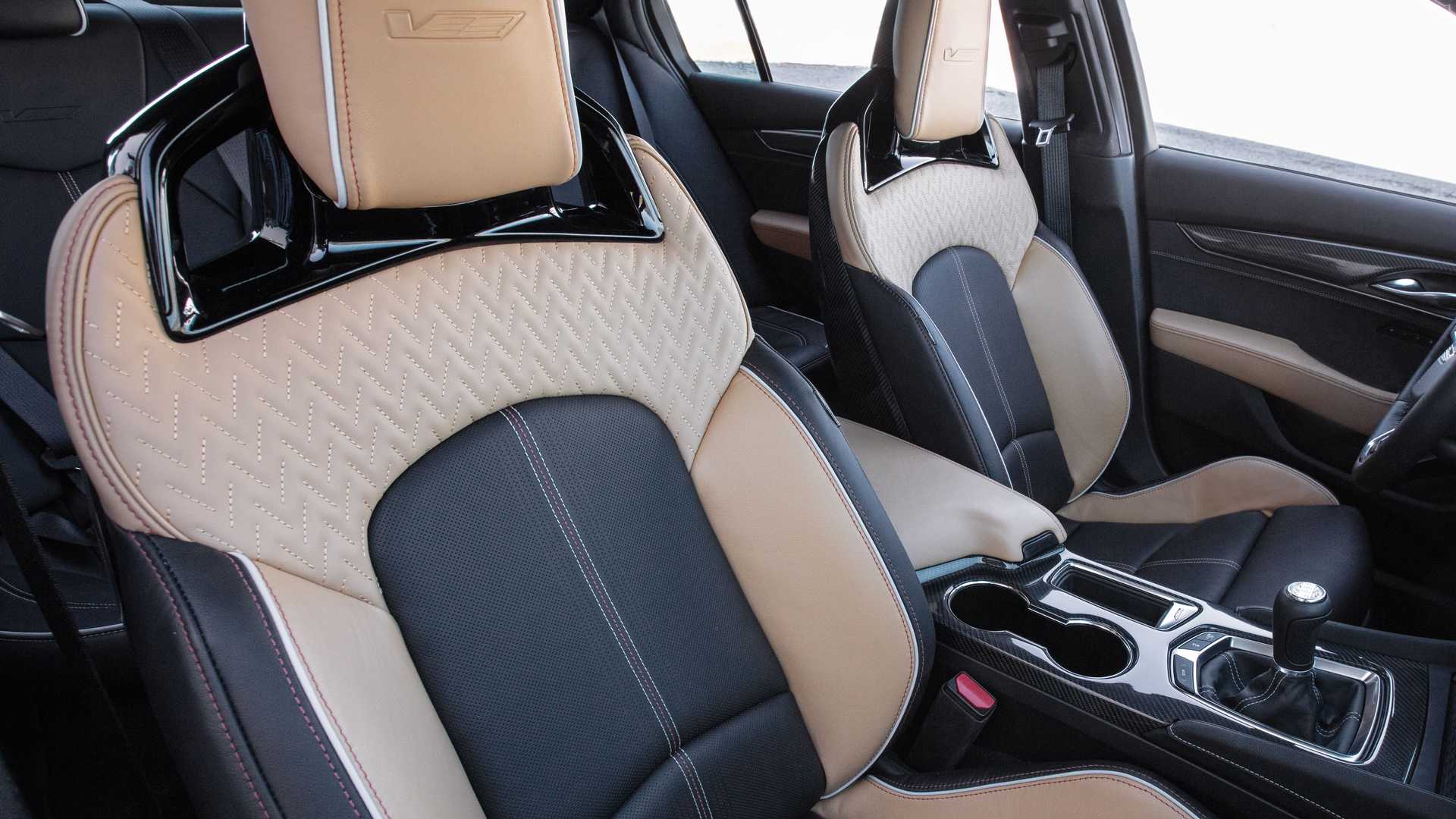 Besonders spannend wird es im Interieur. Denn hier finden sich Carbon-Leichtbau-Schalensitze, die für den auf der Rennstrecke nötigen Seitenhalt sorgen. Cadillac-typisch bleiben sie aber beheizt, belüftet und elektrisch verstellbar. Der Komfort soll schließlich nicht zu kurz kommen – auch nicht in einem Sportmodell.
