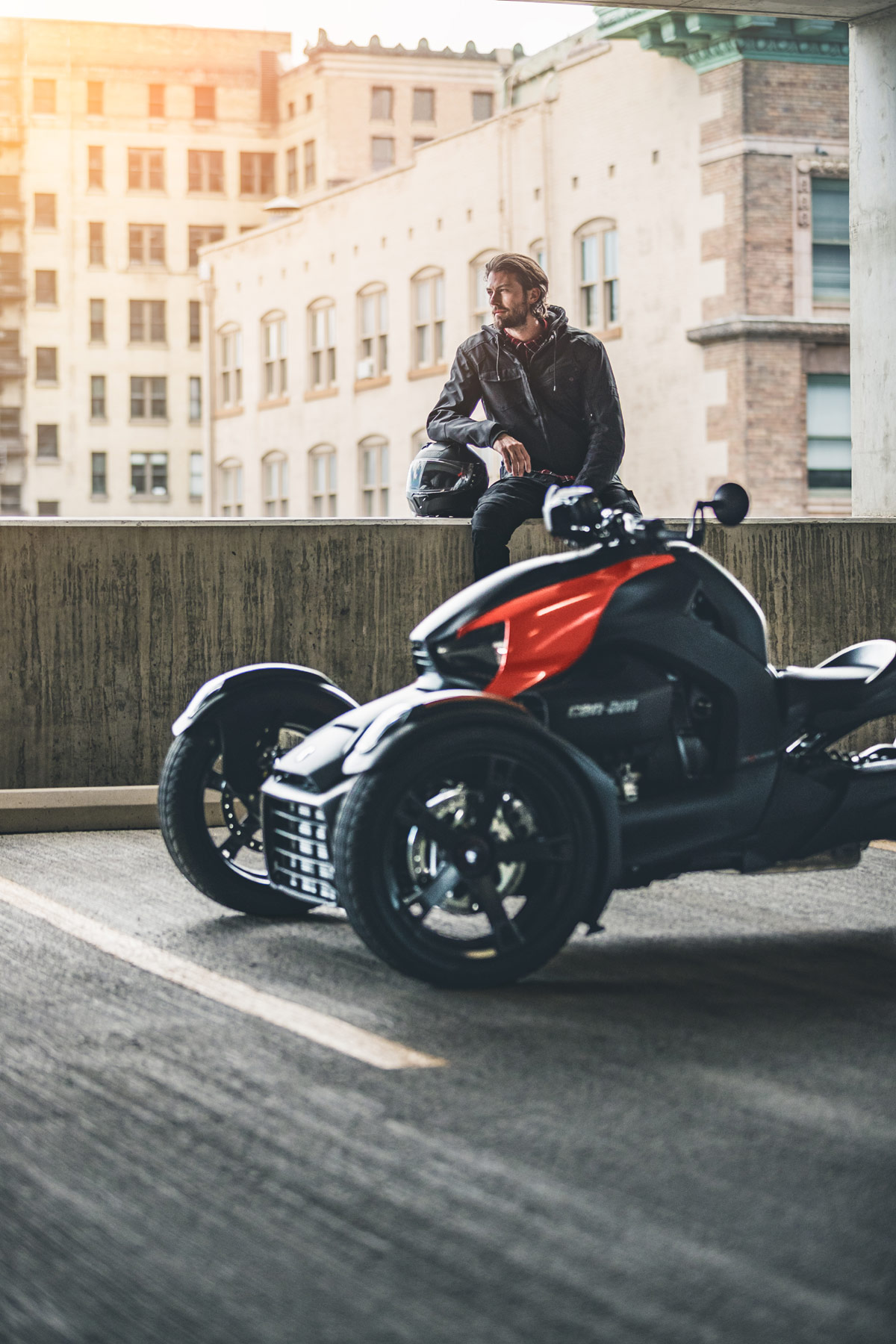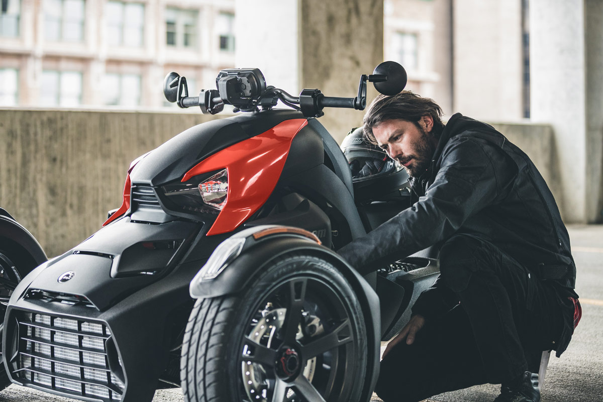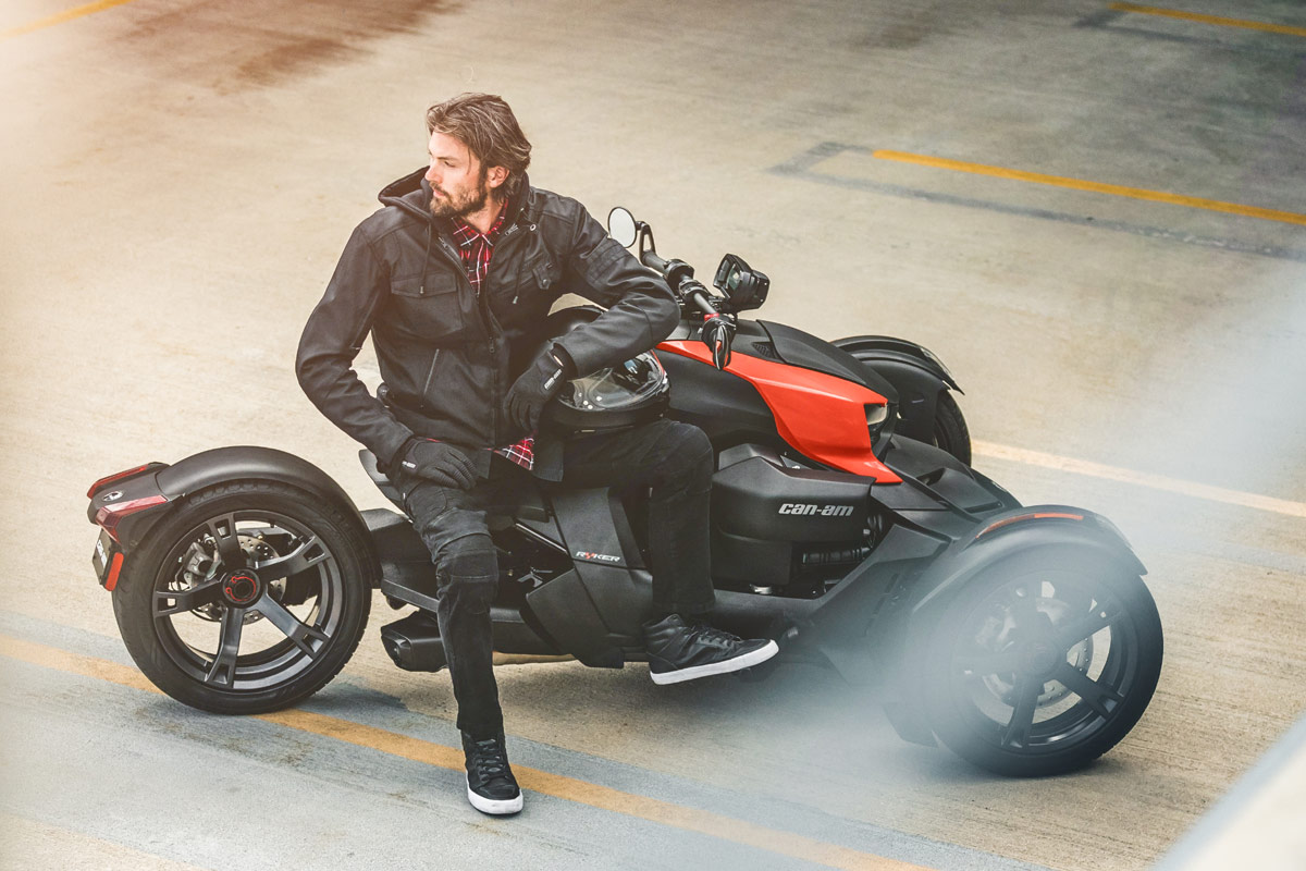 Das neue Einstiegsmodell des kanadischen Herstellers startet mit einem Neupreis von 9.799,00 Euro und kann mit dem normalen Autoführerschein gefahren werden. Helm und Schutzkleidung sind aber dennoch vorgeschrieben. Das Besondere am Ryker sind – wie auf den Bildern unschwer zu erkennen – seine drei Räder. Anders als ein Trike befinden sich hier aber zwei Räder vorne (145er) und eins hinten (205er Schlappen) – das bringt nicht nur mehr Sicherheit beim Fahren und im Stand, es verschafft dem Ryker auch ein absolut einzigartiges Fahrgefühl, das weder mit einem Motorrad, noch mit einem Auto vergleichbar ist – wovon evocars-Redakteur Griesinger, der den Ryker bereits gefahren ist, ein Liedchen singen kann.