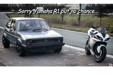 VW Golf 1 mit 1056 PS gegen Yamaha R1 mit 182 PS