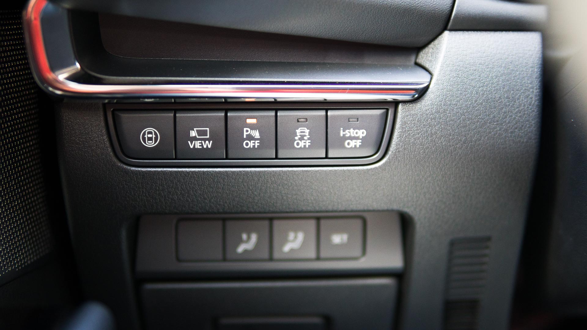 Innen geht es auf hohem Niveau weiter. Vielleich sogar auf noch höherem? Mazda strebt nach Höherem, das zeigt das Interieur eindrucksvoll. Weg vom Massenmarkt, hin zu edel verarbeiteten und hochwertig gezeichneten Arrangements. Der elegante Schwung des Armaturenbretts ist in Soft-Touch-Oberfläche mit Kontrastnaht eingeschlafen, die einem echten Lederbezug nur wenig nachsteht. Die Integration des großen 8.8 Zoll-Monitors ist gelungen – denn im Gegensatz zur Konkurrenz wird er nicht per Touch bedient und kann so weit hinten im Armaturenbrett diskret seinen Dienst verrichten.