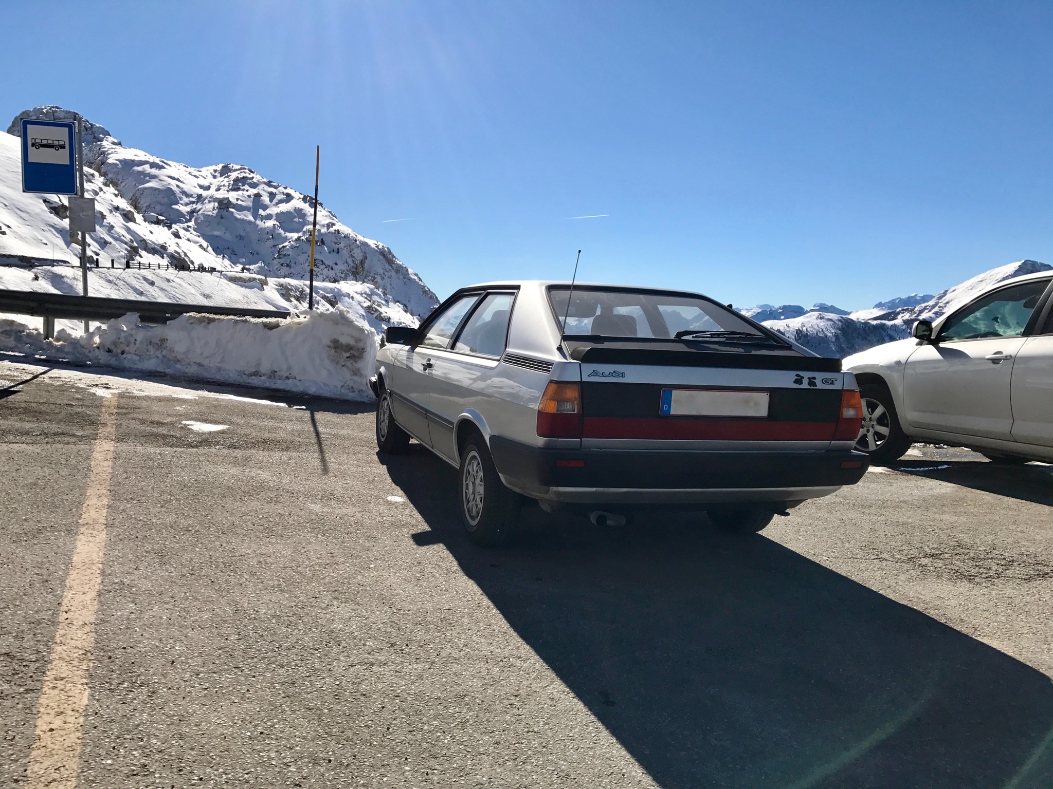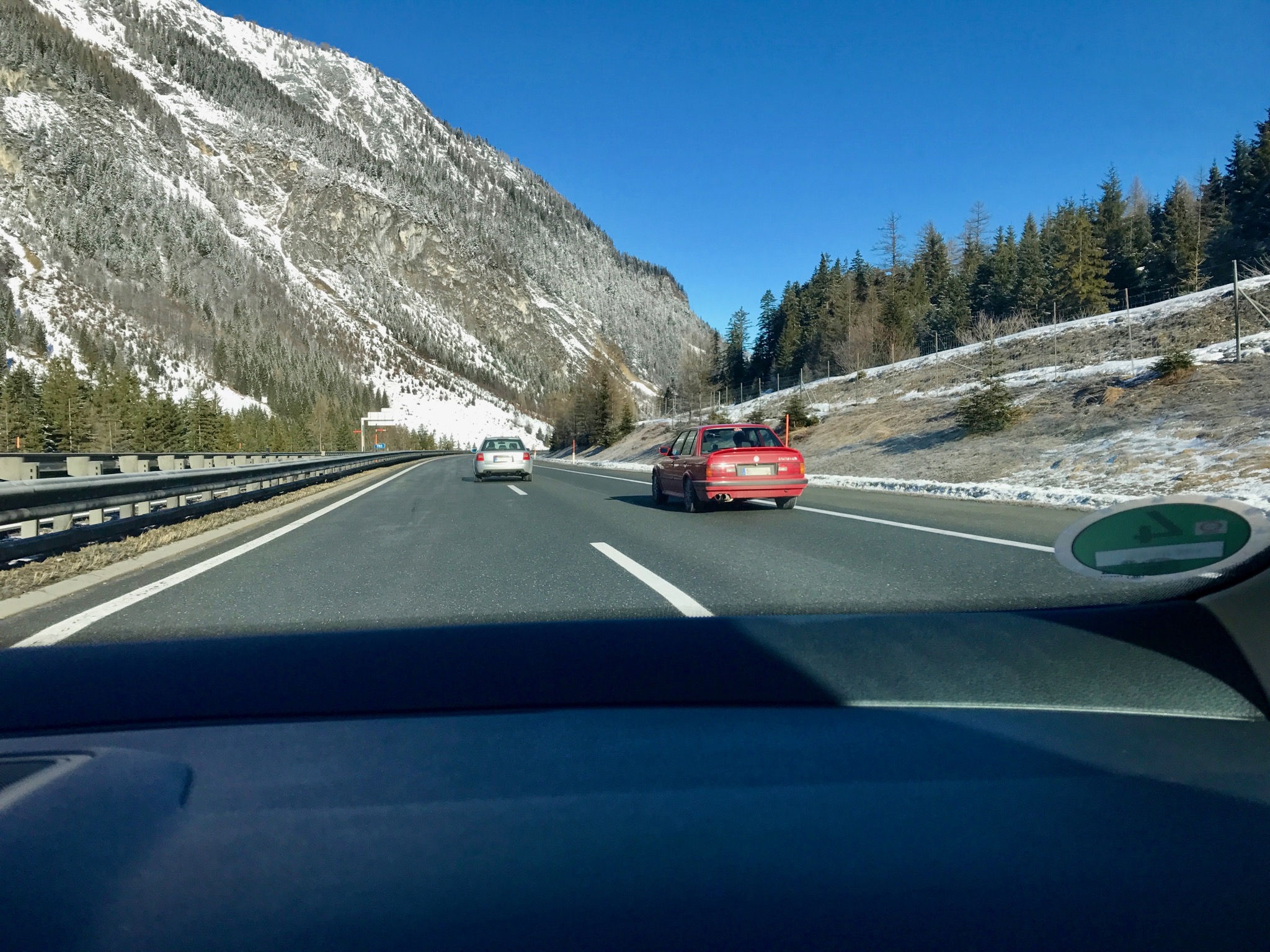 Doch auch kurz vor dem Start am nächsten Morgen machte sich Ernüchterung breit: Dicke Plusgrade und Sonne satt begrüßten uns beim Blick aus dem Hotelzimmer. Und nicht nur das Wetter sollte für schlechtere Laune sorgen, denn eigentlich wollte das EVOCARS-Team ja im Konvoi fahren. Das klappte nur bis zur ersten Kreuzung – der A6-Pilot verließ sich auf seine Schneewitterung, bog richtig ab und sollte an diesem Tag als einziger Teilnehmer Schnee unter den Rädern haben. Leider war die gewählte Strecke später so falsch, dass er auch um die Mittagszeit noch in Cortina d’Ampezzo herumkurvte, während das R32-Gespann sich nach Kurskorrektur schon an der Bar im Etappenziel Lavant das erste Bier schmecken ließ. Und der A6 demonstrierte einmal mehr seine Bocklosigkeit in Form von immer schlechterer Gasannahme und leicht erhöhter Temperatur. Letzten Endes fanden das fiebrige Ross und sein Reiter doch noch den Weg zum Abendessen und die Erkenntnis war geboren, um jeden Preis am nächsten Tag im Konvoi zu fahren.