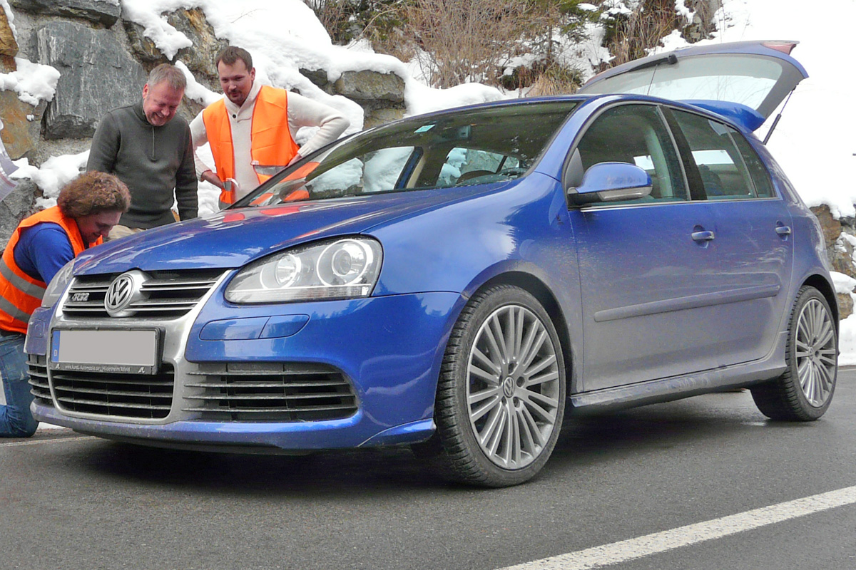 Gesagt, getan. Den folgenden Morgen röhrten ein R32, ein wieder gesundender – ein defekter Luftmassenmesser war schuld – A6 4.2, ein CLK 320 und ein GTI Clubsport die Pustertaler Höhenstraße hinauf und wieder hinunter – hier waren wir ausnahmsweise froh, dass die Strecke schneefrei und trocken war, sonst hätte man sich die Angaserei auch sparen können. Doch leider lief auch an Tag Zwei nicht alles glatt: diesmal wollte ausgerechnet ein Vorderreifen des R32 nicht mehr und einem der ansonsten famosen Dunlop Winter Sport 3D ging buchstäblich die Luft aus.