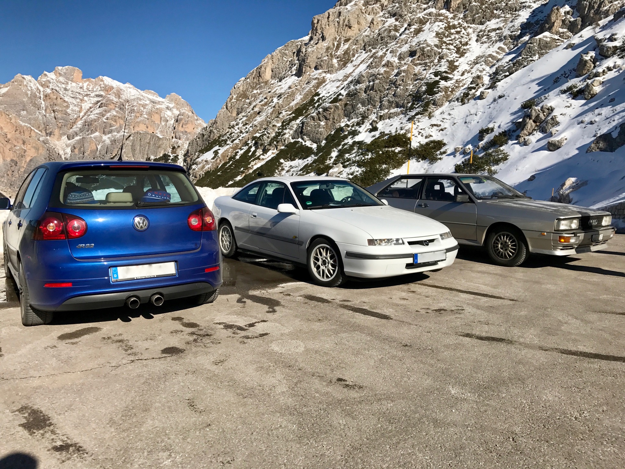 Doch die menschliche Lust aufs Fahren kann auch ein noch so lustloses Auto nicht stoppen und so liefen wir an einem späten Mittwochabend am Startpunkt im norditalienischen Brixen ein. Das Wetter war gut, zu gut, es sorgte bei der Mehrzahl der insgesamt 19 Teilnehmerteams für gewissen Verdruss, hatte man sich doch eine ordentliche Portion der weißen Pracht gewünscht. Der Wurm der letzten Jahre in Form von Schneelosigkeit scheint sich bei der K.I.S.S. Parade eingefressen zu haben, dabei war eine Vielzahl aller Autos mehr als bestens vorbereitet: Calibra 4×4, 325xi, 964 Carrera 4, Audi quattro und natürlich das EVOCARS-Team mit 4Motion und V8 quattro – wir waren alle sowas von geil auf Schnee!