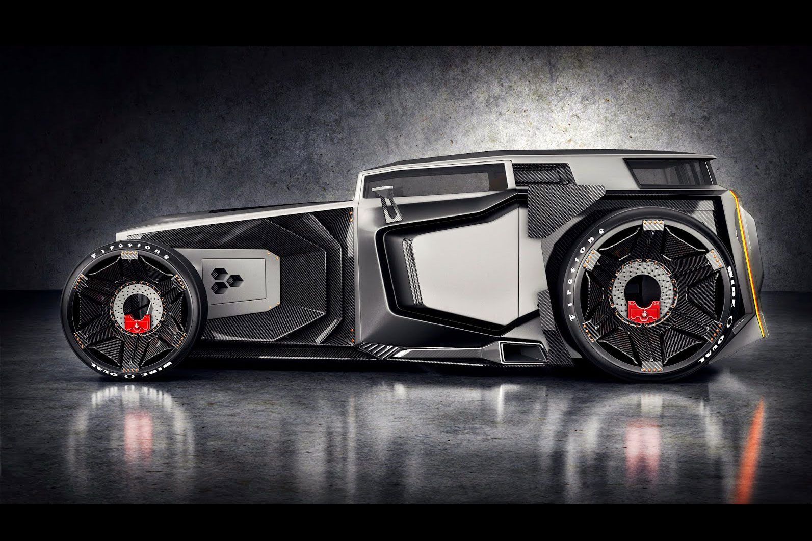 Was haben ein Lamborghini und ein Hot Rod gemeinsam? Nichts? Oh doch: Mit beiden lässt sich trefflich Posen und auf dicke Hose machen. Doch welcher der beiden Vertreter der Gattung Auto eignet sich besser, für verdrehte Hälse und gezückte Handycams zu sorgen? Und was, wenn man beide – Lamborghini und Hot Rod – einfach kreuzt? Dieser Frage sind die beiden befreundeten Designer Pawel Wisniewski und Jans Slapins nachgegangen. Beide sind autoverrückt und stehen sowohl auf Lambos als auch auf alte Hot Rods.