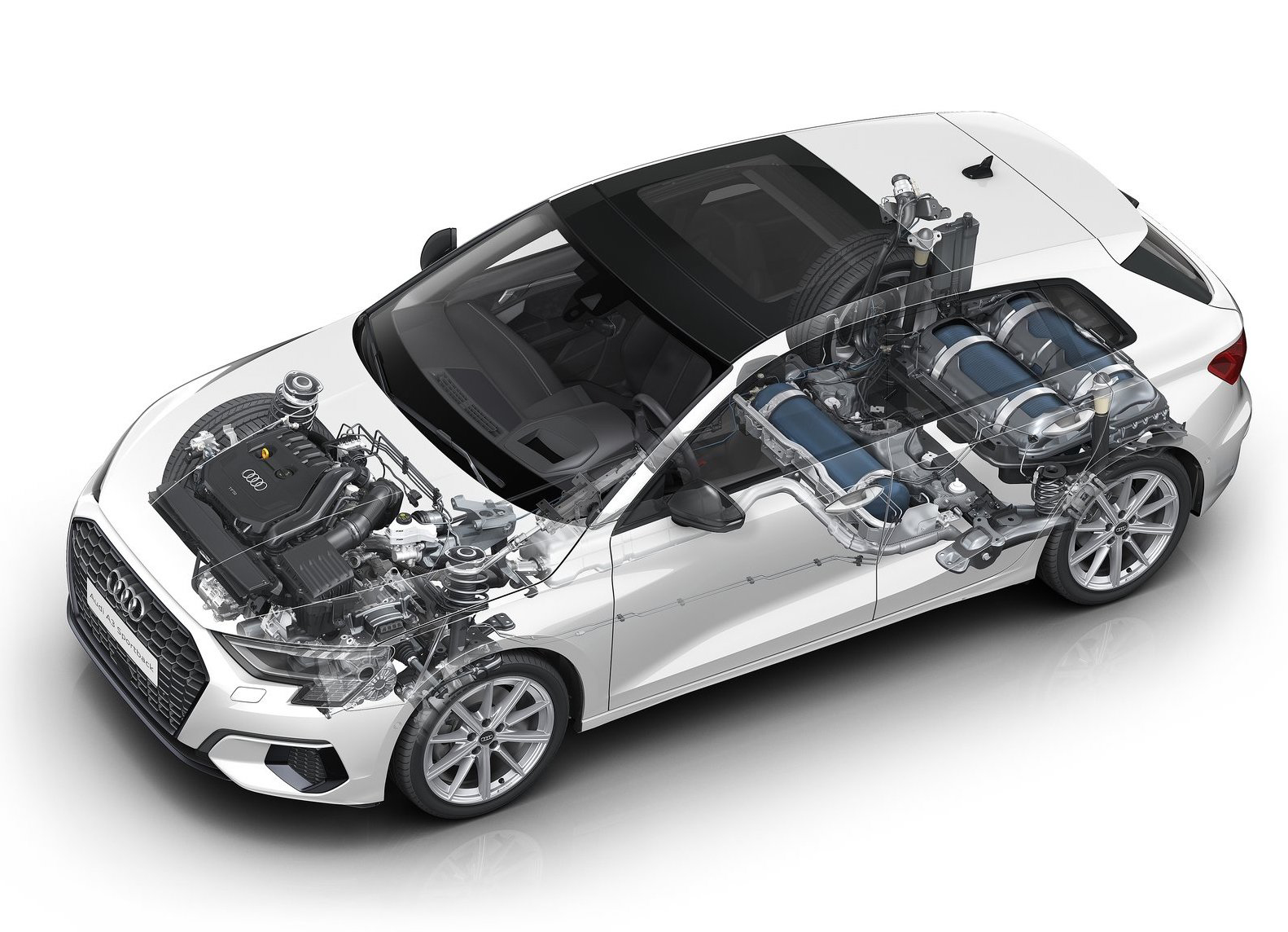 {1}Der neue Audi A3 Sportback 30 g-tron macht sich hier die konstruktiven Vorteile der neuesten 1,5l-TSI-Motorengeneration zu Nutze. Extra für den Erdgas-Antrieb wurde das 150PS zudem noch einmal überarbeitet. Eine auf 12,5:1 erhöhte Verdichtung sorgt für einen besseren Wirkungsgrad, ebenso wie das besonders sparsame Miller-Brennverfahren.
