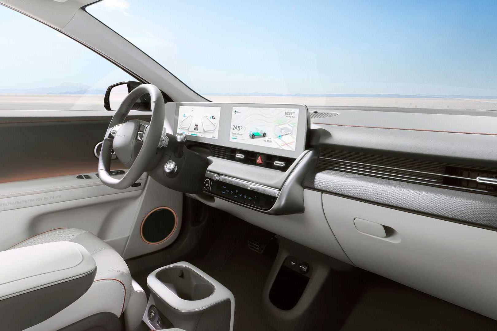 Einen ebenfalls anderen Weg als die Konkurrenz geht der Hyundai Ioniq 5 beim Innenraumkonzept. Mit seinem Radstand von drei Metern kann er es durchaus mit Luxuslimousinen aufnehmen, entsprechend generös fällt das Platzangebot aus. Vorne gibt es zwei Sitze, die sich auf Wunsch in Liegesitze verwandeln lassen. Auch hinten geht es flexibel zu, die Dreiersitzbank lässt sich fast 15 Zentimeter längs verschieben.