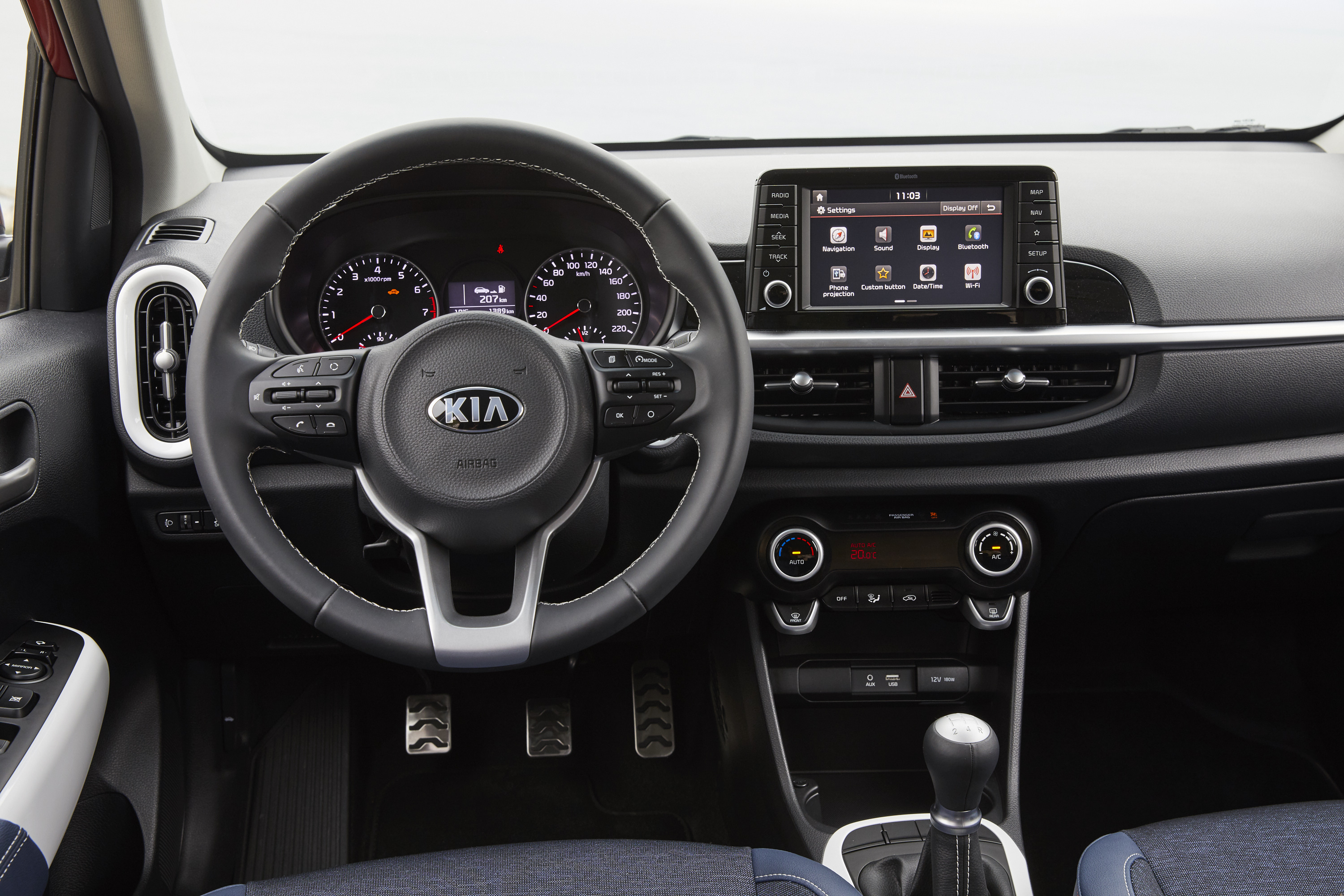 {1}Im Inneren setzt sich Positives fort, die Sitze sind ausreichend gepolstert, wenngleich Seitenhalt vielleicht nicht an oberster Stelle im Lastenheft stand. Aber, um das deutlich zu machen: der Picanto startet bei 9.990 Euro – so viel und noch viel mehr kann auch schon eine Außenfarbe beim Lamborghini Huracán Performante kosten. Unser Proband kam in der Ausstattungslinie Spirit, die bei 13.890 Euro beginnt und im Vergleich zur Einstiegsvariante mit Funkfernbedienung für die Zentralverriegelung, Bluetooth-Freisprecheinrichtung, elektrischen Fensterhebern, Klimaautomatik, Lederlenkrad sowie 15-Zöllern aufwartet. Ferner gibt’s optional ein fest eingebautes 7-Zoll-Navi samt Rückfahrkamera und allerhand Optionen, die den kleinen Picanto zum Großen machen und die es bei der Konkurrenz nicht einmal für Geld oder gute Worte gibt.