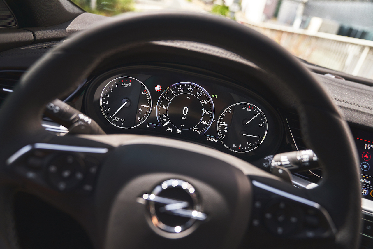Während der Fahrt fallen dann die unzähligen Kleinigkeiten auf, die das Leben im grossen Opel angenehm machen. Zuallererst natürlich die famosen Sitze, zertifiziert rückenschonend, langstreckenbequem und mit feinem Leder bezogen. Dann das Infotainment und die teildigitalen Armaturen – es ist ein wunderbarer Spagat aus Moderne und Tradition. Alle Funktionalitäten sind da und doch wirkt er vertraut.
