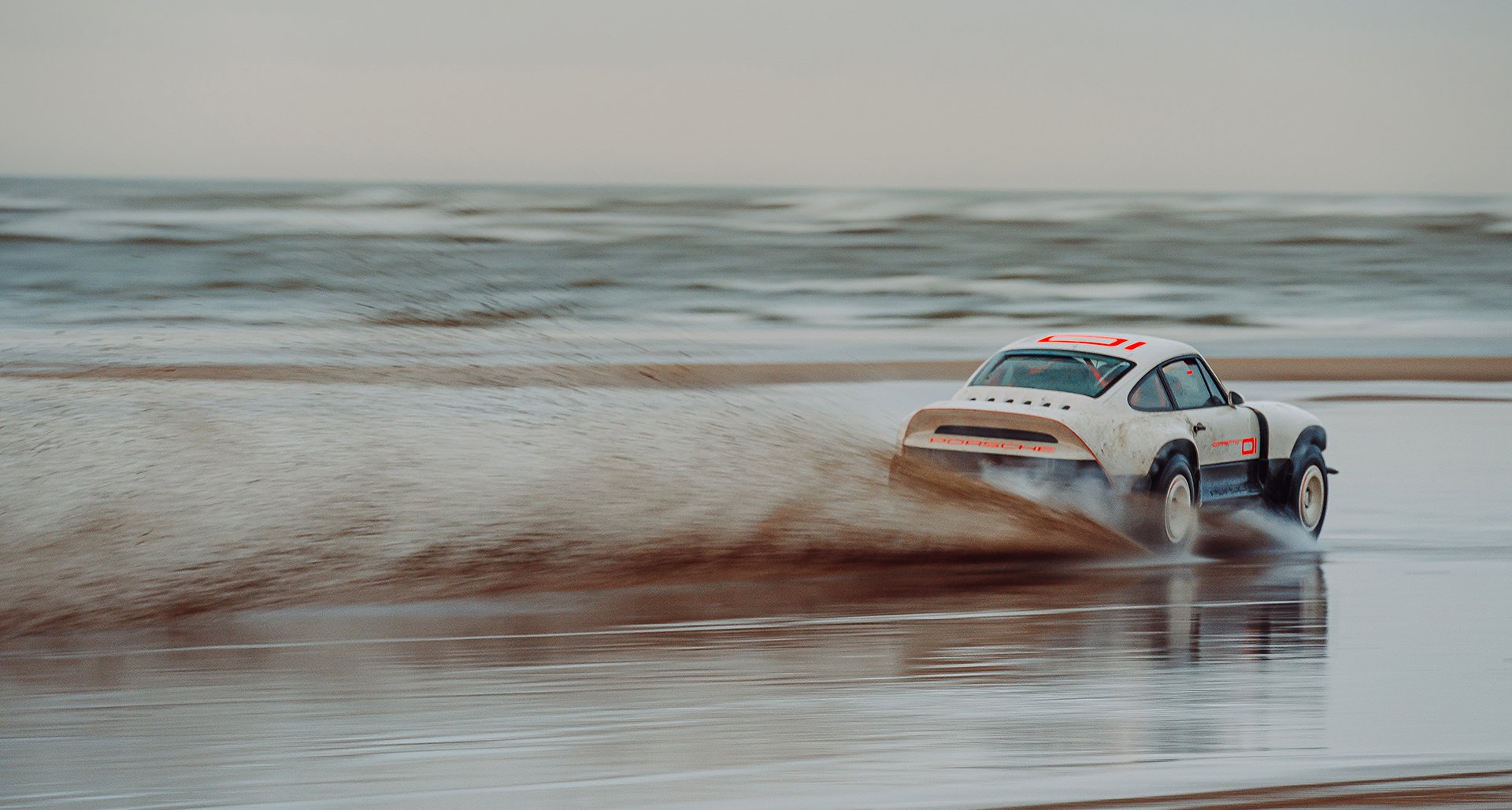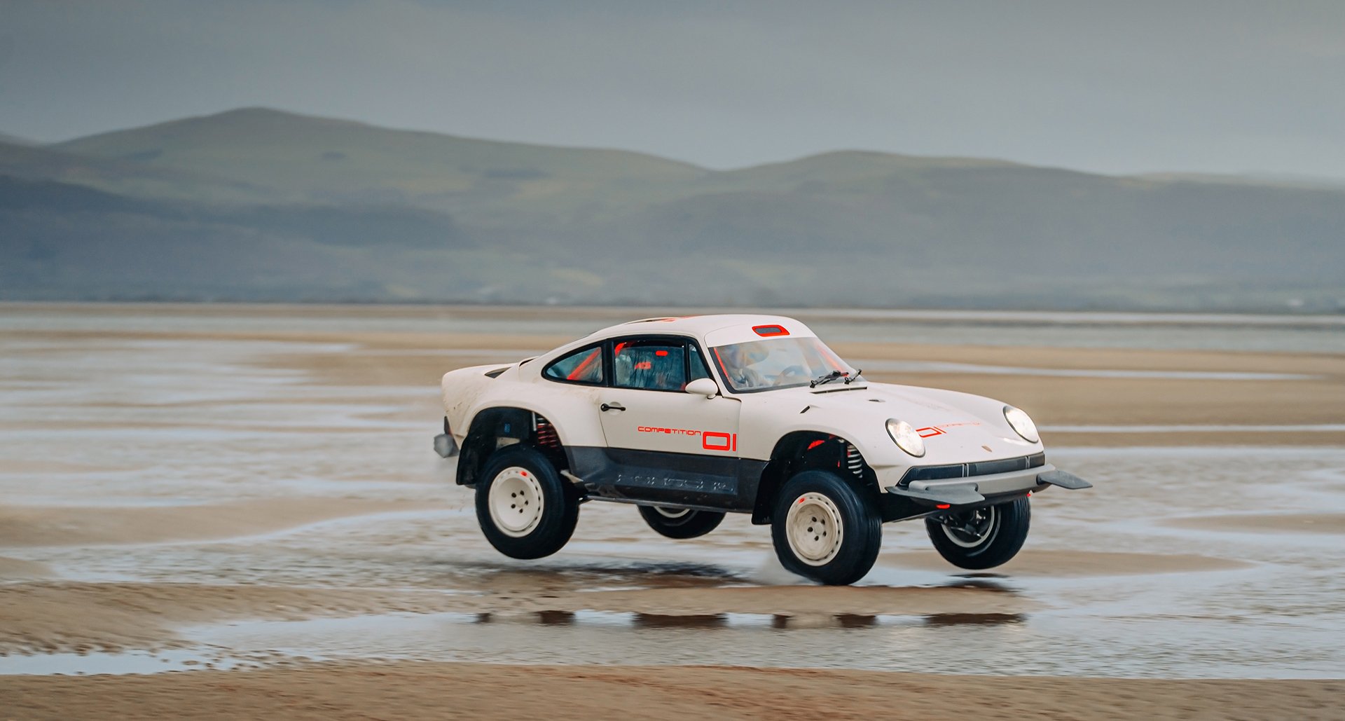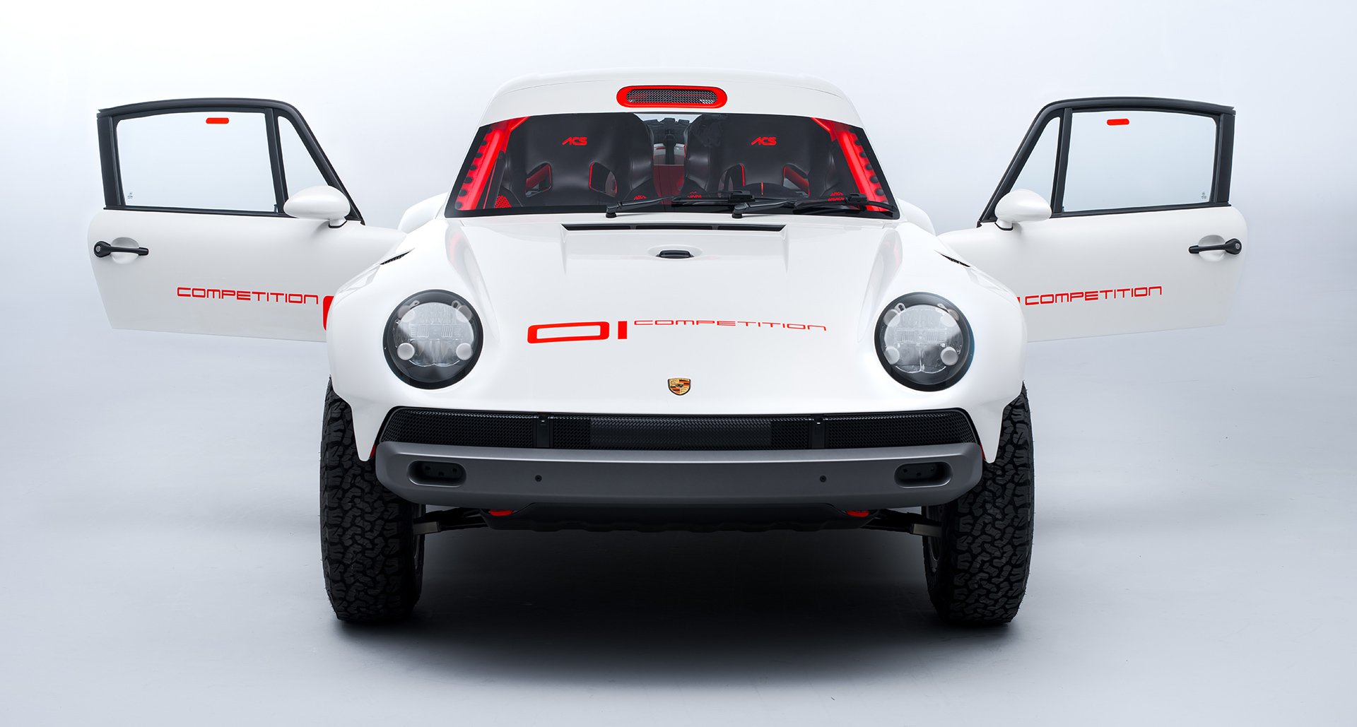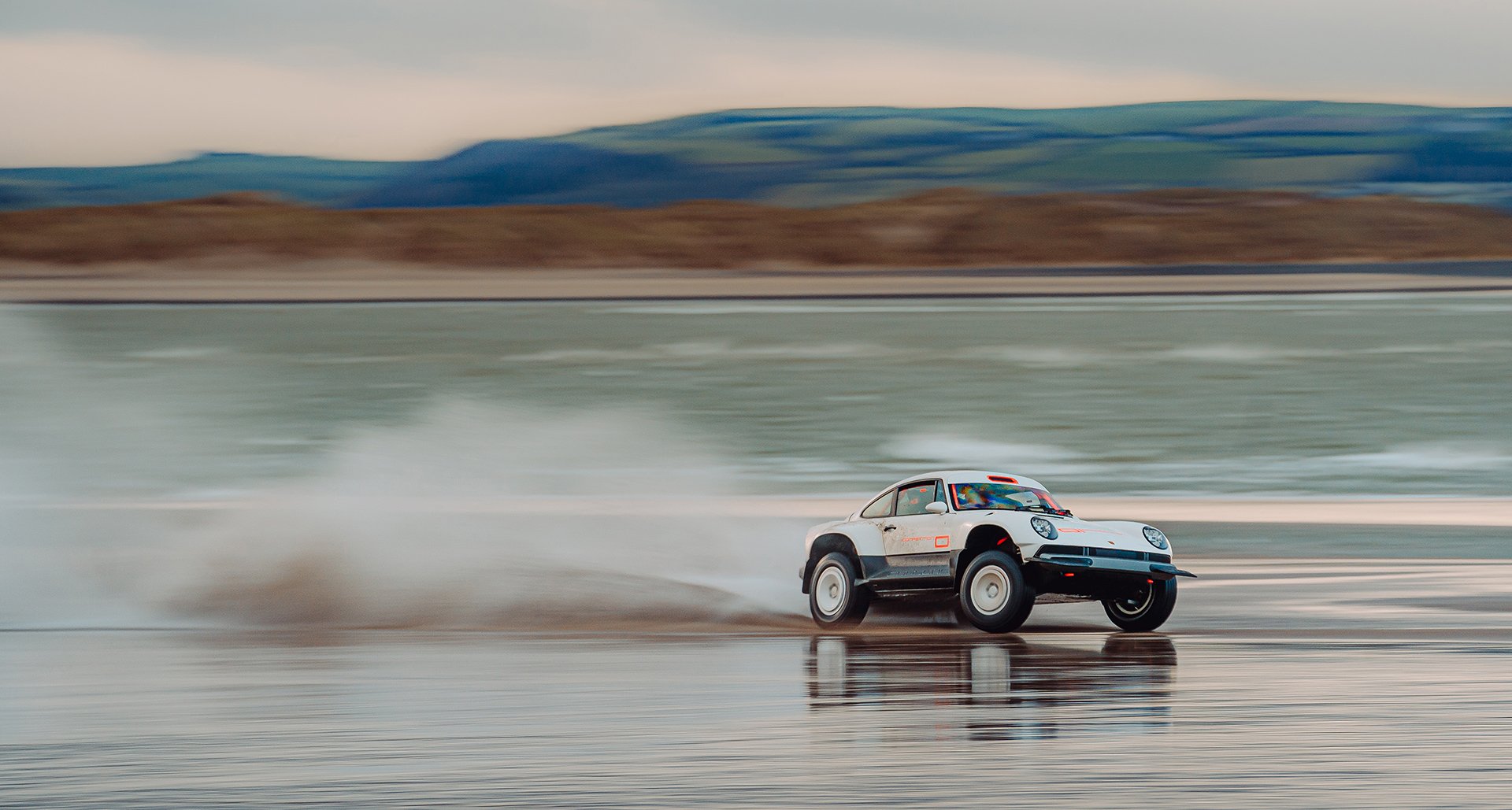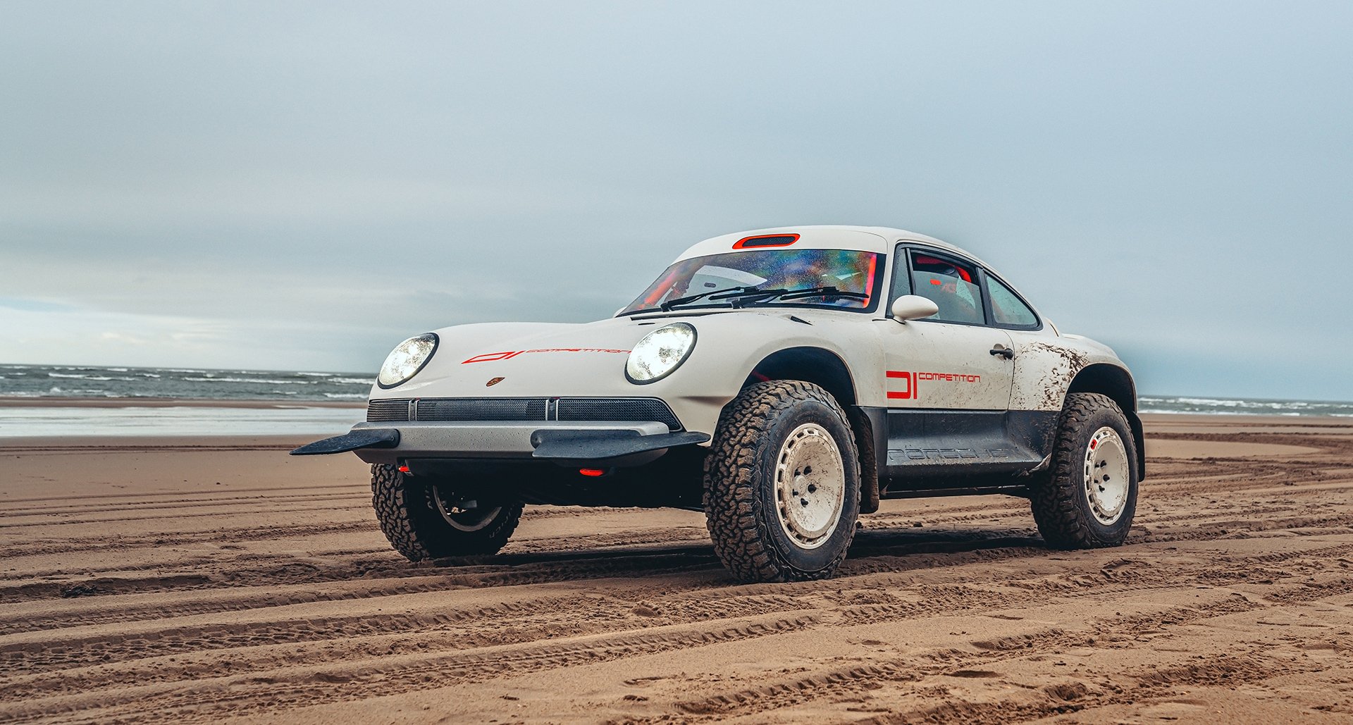 {1}Man nehme einen 964er-911 aus dem Jahre 1990 als Basis. Dann versteife man das Chassis, baue alles ein, was man auf einer Paris-Dakar oder Baja 1000 so brauchen kann. Soll heissen: acht Dämpfer etwa, Vierkolben-Monoblock-Stahlbremsen, FIA-Überrollkäfig. Schliesslich gebe man noch einen Bi-Turbo-3,6-Liter-Boxer mit 450 PS und 570 Nm maximalem Drehmoment hinzu.