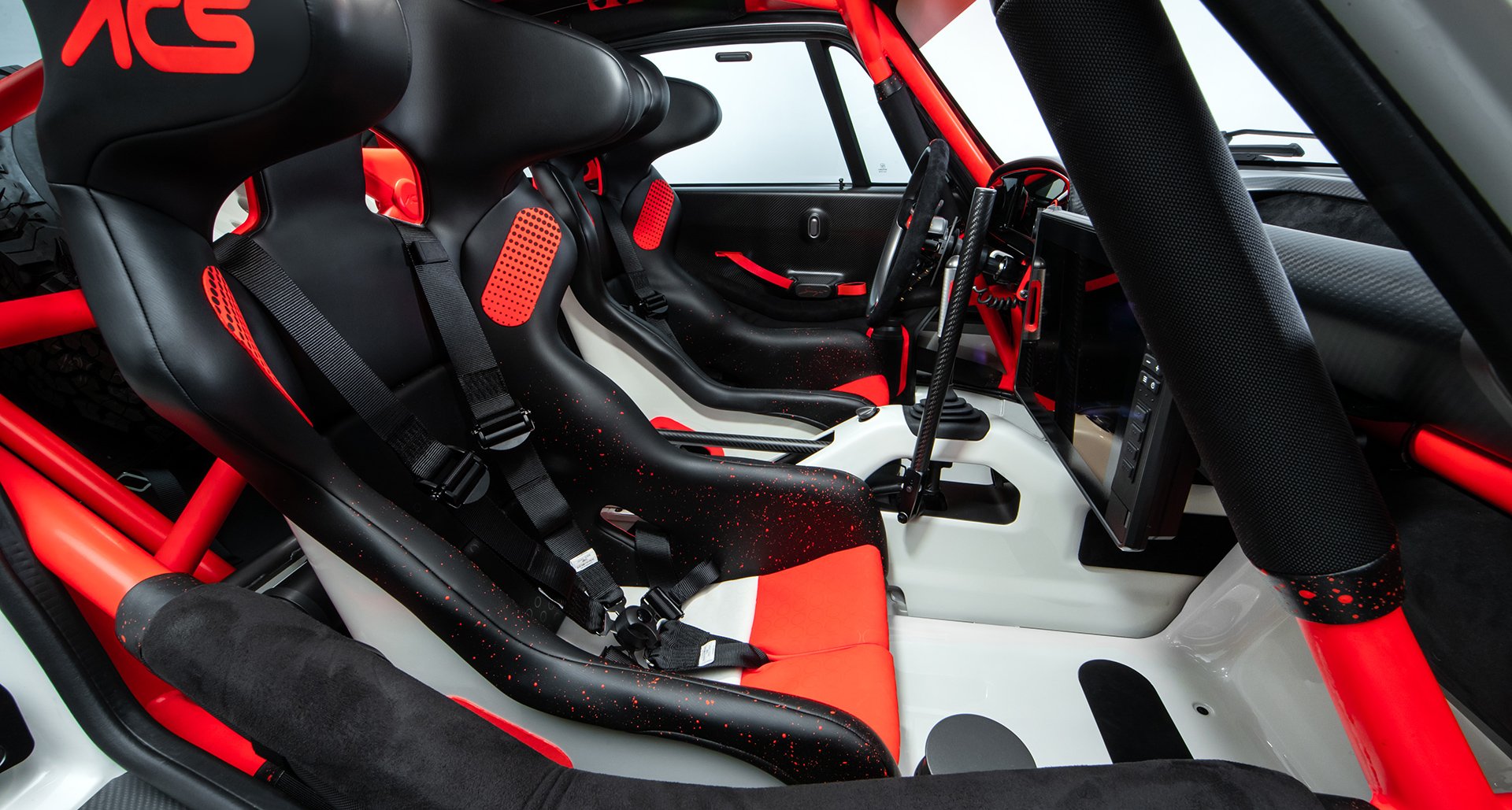 Geschaltet wird über ein sequentielles Fünf-Gang-Getriebe an einem gigantischen Hebel oder per Paddles. Spannend auch die Kraftverteilung des Allradantriebs. Gleich drei Sperrdifferential kümmern sich um bestmöglichen Grip. Der Singer ACS ist nämlich auch Werk von Richard Tuthill.