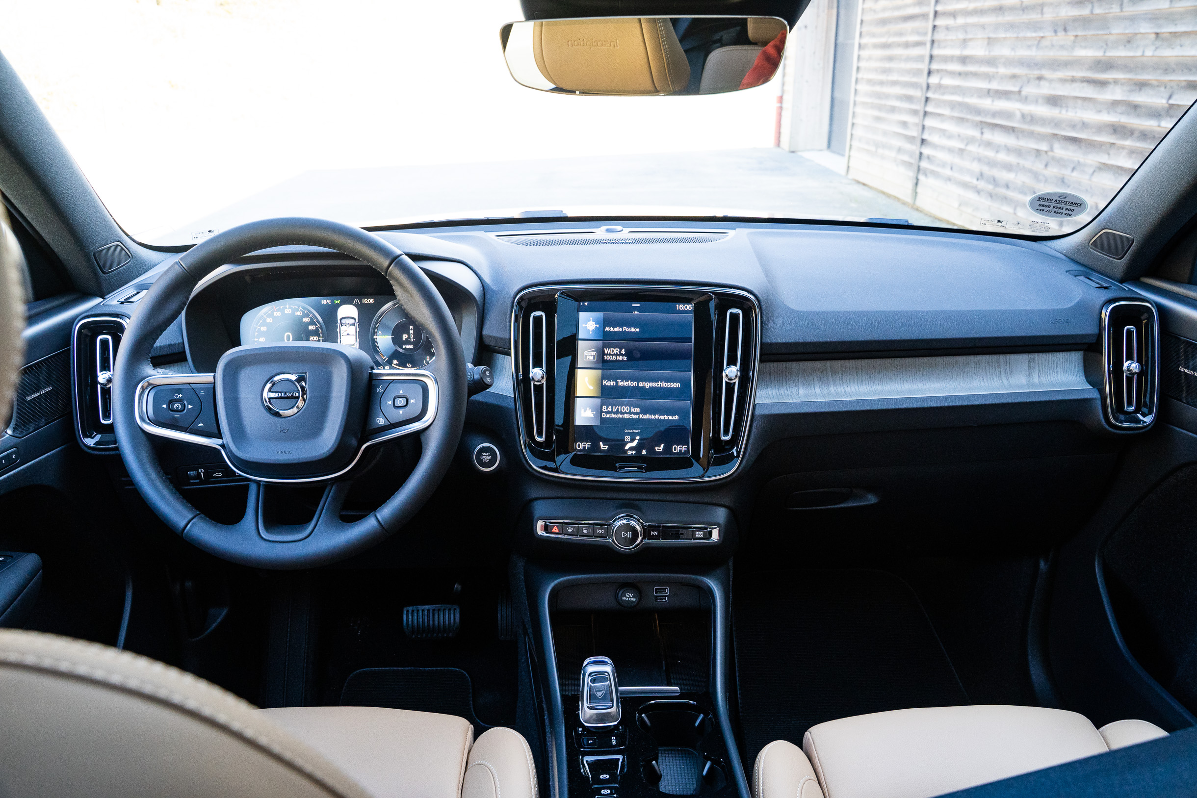 Die Verbräuche klettern dann beinahe ins Zweistellige. Ansonsten ist der Volvo XC40 Recharge T5 eher genügsam. Auf unserer Testrunde, auf der wir ihn immer brav geladen hatten, bleibt er bei 3,2 Litern. Plus einen gemessenen Stromverbrauch von 16kWh auf 100 Kilometer.