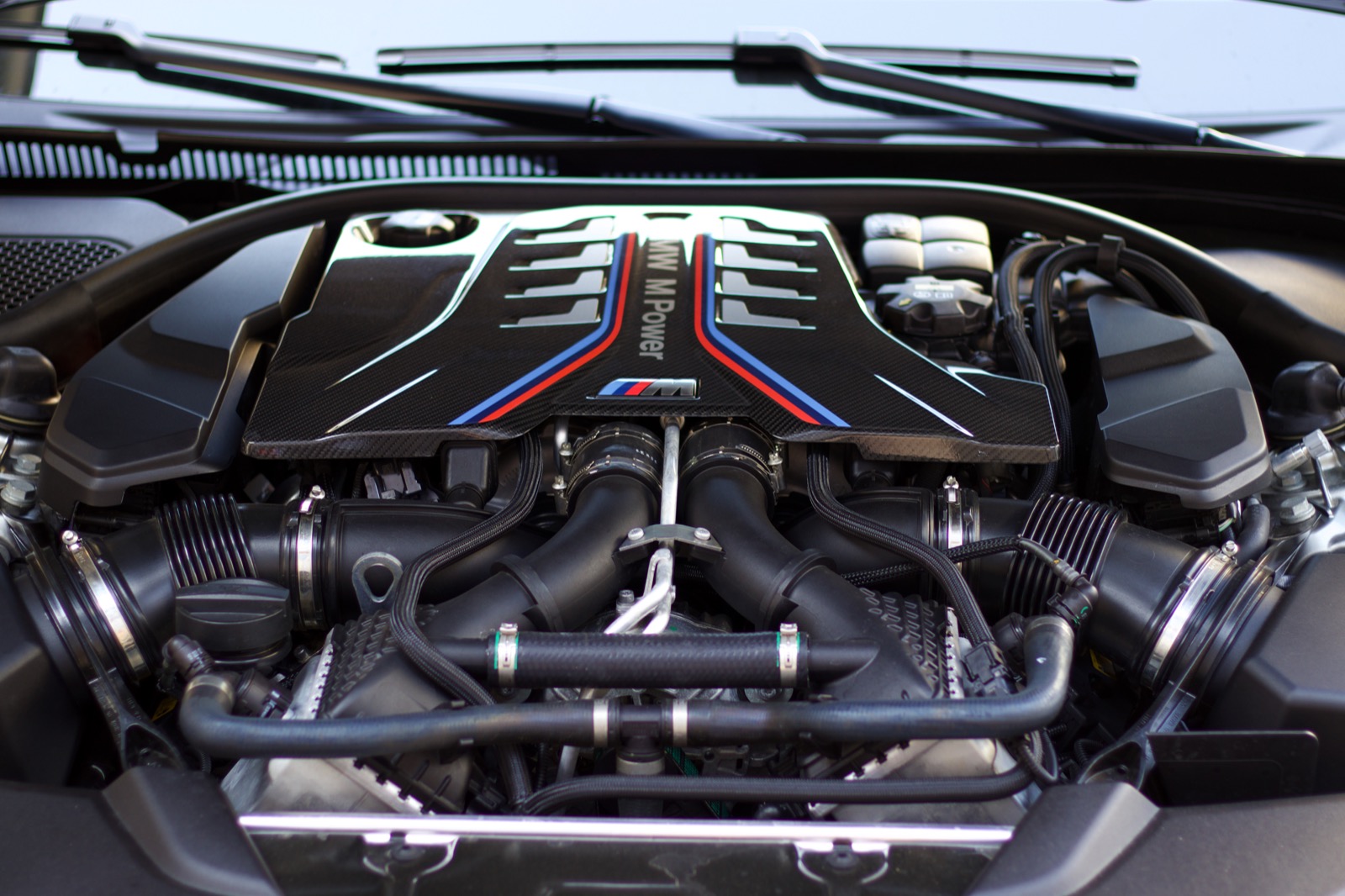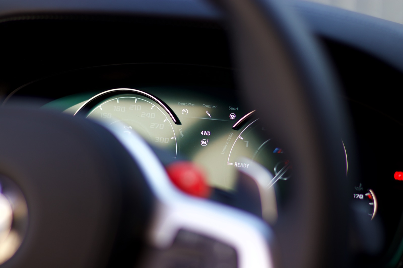 Was der Freude am Fahren aber keinen Abbruch tut. So tönt die Competition-eigene Sportabgasanlage bereits beim Kaltstart lautstark und spannt man den Motor mittels separatem Sport-Plus-Modus vor, brabbelt und rotzt es aus den vier schwarzen Endrohren, dass es eine wahre Freud ist. Und dementsprechend ist auch der Vortrieb des doppelt aufgeladenen 4,4-Liter-V8 vor allem eines: vehement. Also so, wie man es von 625 PS und 750 Newtonmeter eben erwarten kann. Der Mehrleistung von 25 PS und des minimal höheren Drehmomentplateaus (bis 5.800 anstelle von 5.600 U/min) wegen wird wohl kaum jemand den Competition bestellen. Was wir aber behaupten mögen: dass wir das Hubraumplus im Vergleich zu den mitbewerbenden Biturbo-Achtzylindern, allen voran Mercedes-AMG mit seinem E 63 S (hier bei uns im Test), durchaus verspürten.