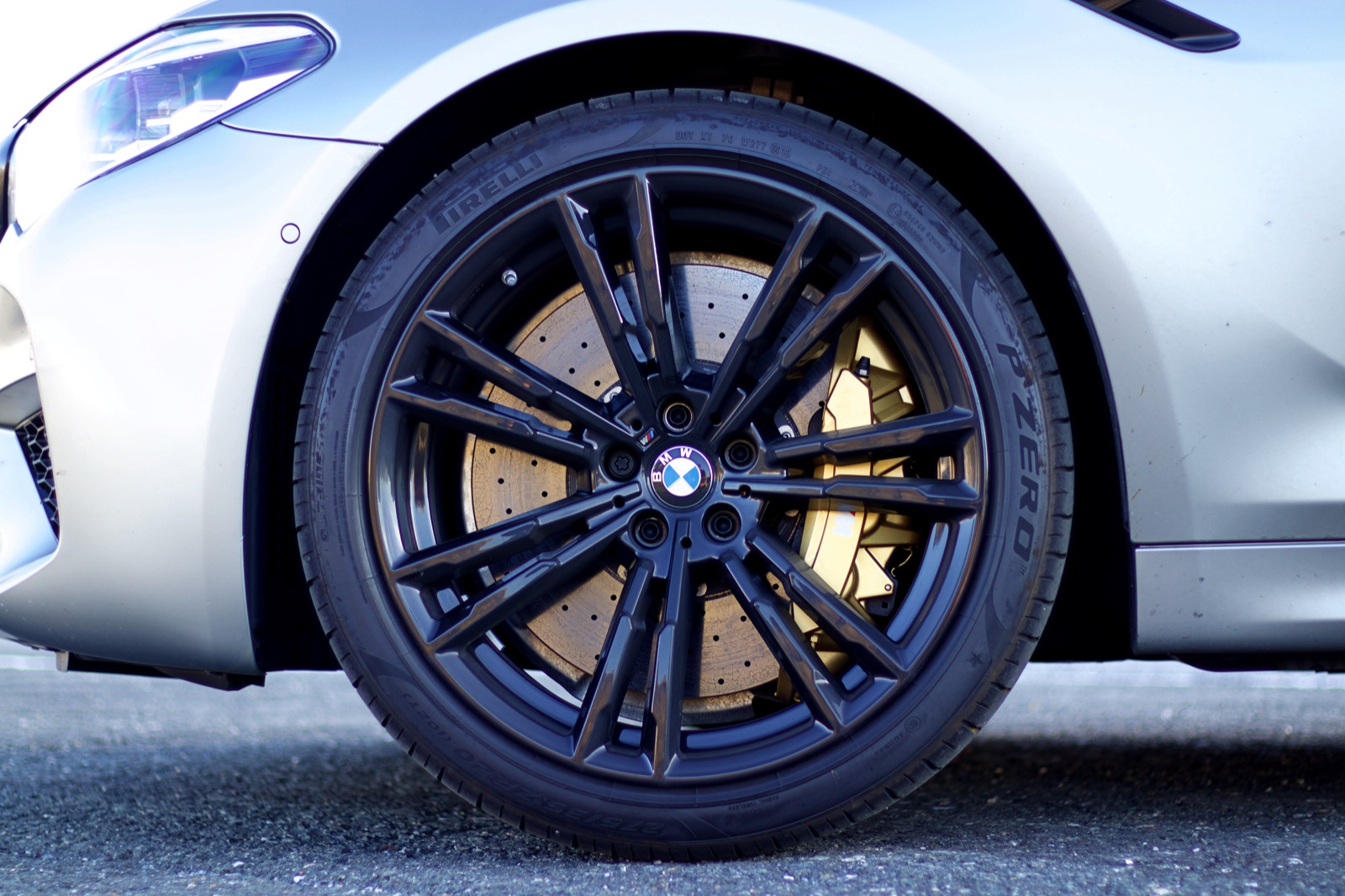 Am Ende der immer kurzen Geraden staucht die auch beim Competition nicht serienmäßige Carbon-Keramikbremse den M5 wieder zusammen. Das macht sie angesichts ihres Preises von 8.800 Euro mehr als anständig und auch den bei Regenfahrten so gefürchteten Totpunkt haben wir diesmal nicht erspüren können. Stattdessen macht sie das, was sie soll, verfügt über eine sehr gute Dosierbarkeit und nicht über das sonst so häufige Kopfnicksyndrom. Ob sie im Alltag ein „must have“ ist, sollte jeder für sich entscheiden. Wir gehen davon aus, dass die Stahlbremse ihren Job in weiten Teilen nicht schlechter machen wird. Und wer seinen M5 über das Dreijahresleasing hinaus behalten will, macht sich vielleicht auch über den enormen Unterhalt der Keramikbremse mit ihren gold lackierten Sätteln eher Gedanken.
