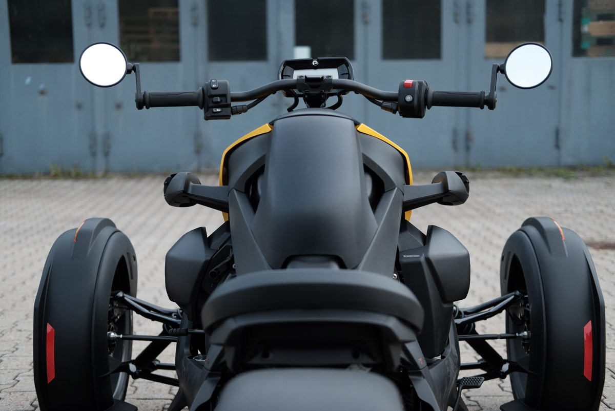 Oh ja, sie kann, denn der Ryker ist mit einem Pkw-Führerschein zu bewegen – und das ist für den Hersteller ein ganz wichtiges Verkaufsargument. Man braucht keinen Motorradführerschein. Entsprechend ist auch die Bedienung simpel gehalten. Nur ein Bremspedal für den rechten Fuß, und ein Gasgriff für die rechte Hand. Das war’s.