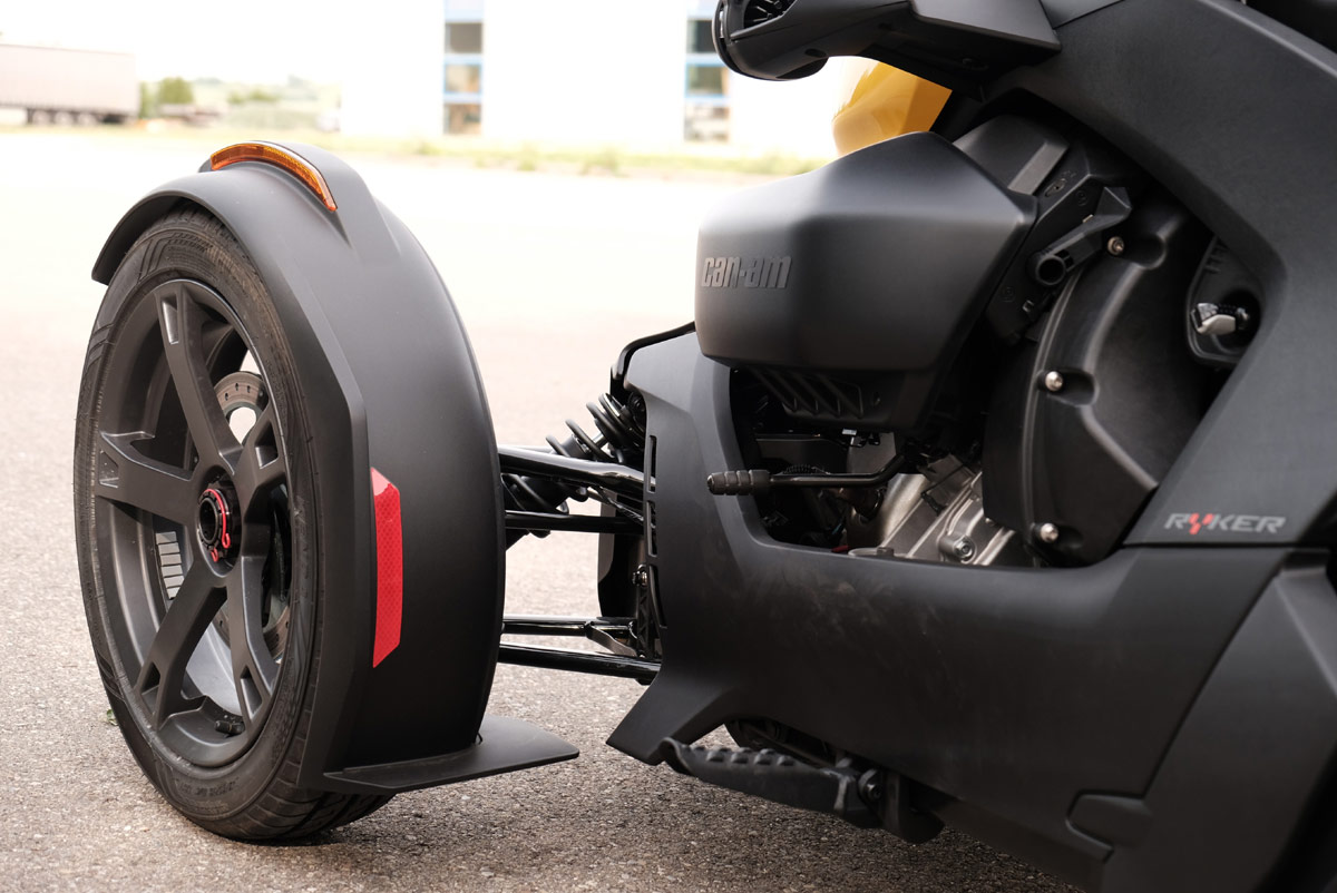 „Boah, ist das geil, fährt das schnell?“ Das war der erfrischende Ausspruch eines kleinen Jungen, der an einer Kreuzung sogar vor Freude auf die Straße Sprang und den Ryker gleich anfassen musste. Die ehrliche Antwort? Nein, der Ryker ist nicht das schnellste Fahrzeug mit drei Rädern unter der Sonne. Dafür wäre sein entfernter Verwandter, der Can-Am Spyder F3-S mit Sportmodus schon die bessere Wahl (beschleunigt mal eben von 0 auf 100 in unter 5 Sekunden).  Doch das muss er auch gar nicht sein. Auf dieses Ziel hin wurde er nicht entwickelt, diesem Ziel ist auch die Kombination aus 50 PS starkem 600ccm-Motor und CVT-Getriebe nicht untergeordnet. Vielmehr soll der Ryker ein Spaßgefährt zum Cruisen und – seien wir ehrlich – auch zum Showlaufen sein. Denn Defizite beim Topspeed wetzt das coole Ding beim Cruisen über den Strip voll aus. Wer nur durch die Lande heizen will, der ist mit dem Ryker falsch beraten und sollte sich fürs offene Fahren eher einmal den Spyder als Naked Version ansehen.