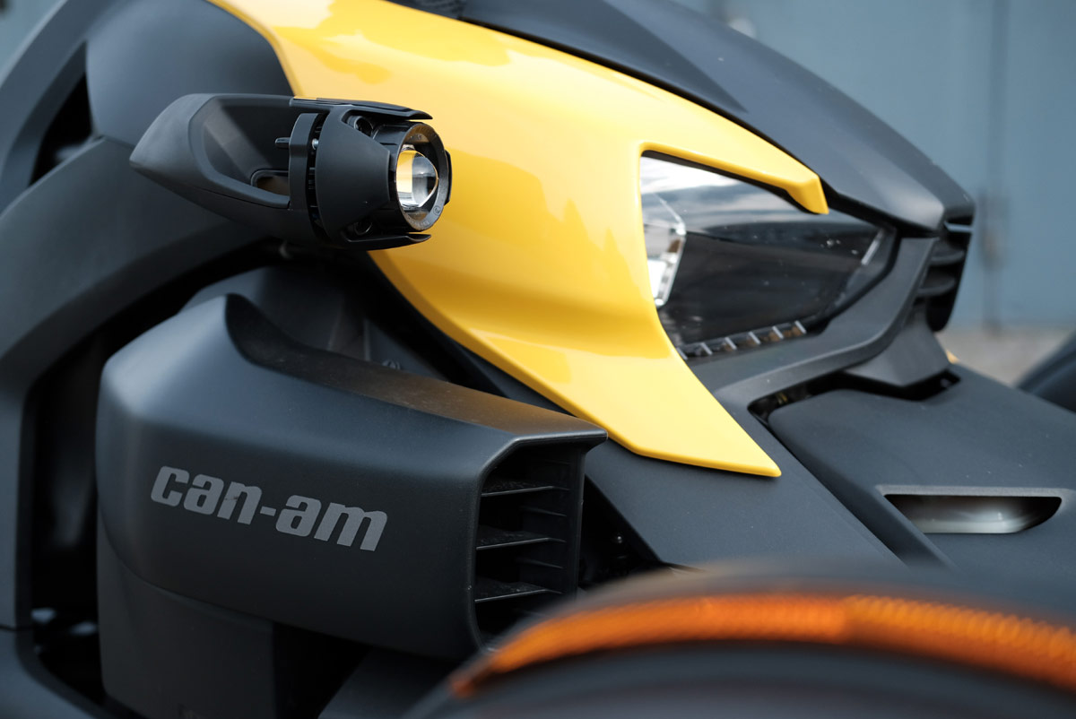 „Boah, ist das geil, fährt das schnell?“ Das war der erfrischende Ausspruch eines kleinen Jungen, der an einer Kreuzung sogar vor Freude auf die Straße Sprang und den Ryker gleich anfassen musste. Die ehrliche Antwort? Nein, der Ryker ist nicht das schnellste Fahrzeug mit drei Rädern unter der Sonne. Dafür wäre sein entfernter Verwandter, der Can-Am Spyder F3-S mit Sportmodus schon die bessere Wahl (beschleunigt mal eben von 0 auf 100 in unter 5 Sekunden).  Doch das muss er auch gar nicht sein. Auf dieses Ziel hin wurde er nicht entwickelt, diesem Ziel ist auch die Kombination aus 50 PS starkem 600ccm-Motor und CVT-Getriebe nicht untergeordnet. Vielmehr soll der Ryker ein Spaßgefährt zum Cruisen und – seien wir ehrlich – auch zum Showlaufen sein. Denn Defizite beim Topspeed wetzt das coole Ding beim Cruisen über den Strip voll aus. Wer nur durch die Lande heizen will, der ist mit dem Ryker falsch beraten und sollte sich fürs offene Fahren eher einmal den Spyder als Naked Version ansehen.