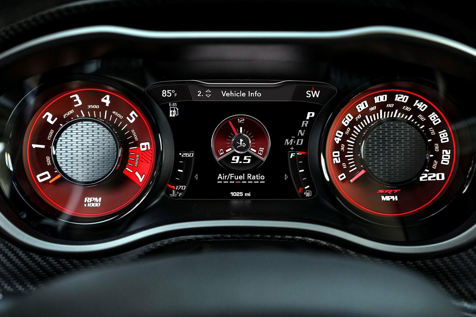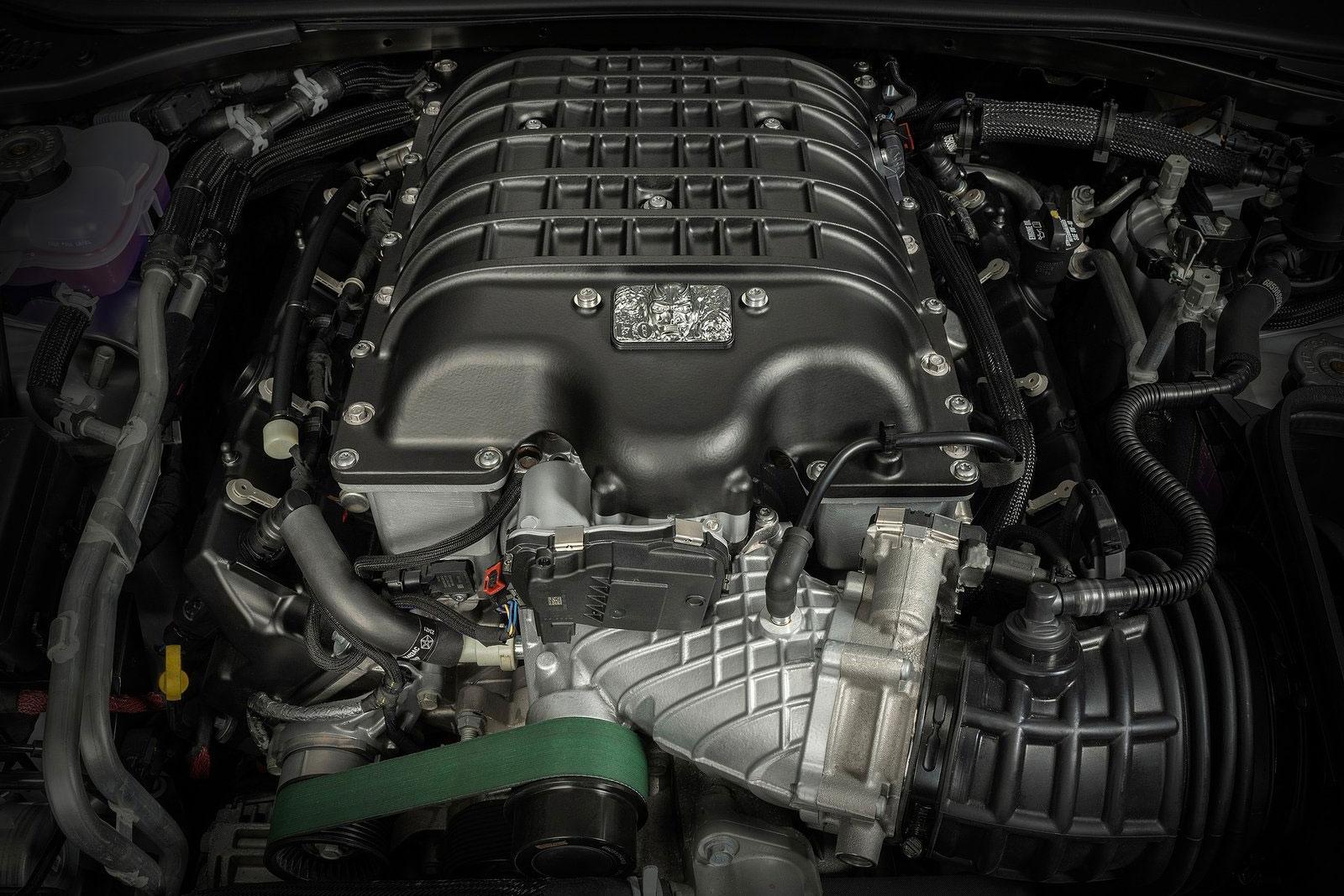 Für diese Fahrleitungen wurde der aus dem Dodge Challenger SRT Hellcat bekannte V8-Motor ebenso heftig überarbeitet wie der gesamte restliche Antriebsstrang. Der Kompressor auf dem 6,2-Liter-V8 wurde von 2,7 auf 3,0 Liter vergrößert, die Drosselklappen messen nun 105 statt 92 Millimeter und der Ladedrucke stieg von 1,05 bar auf nun 1,46 bar.
