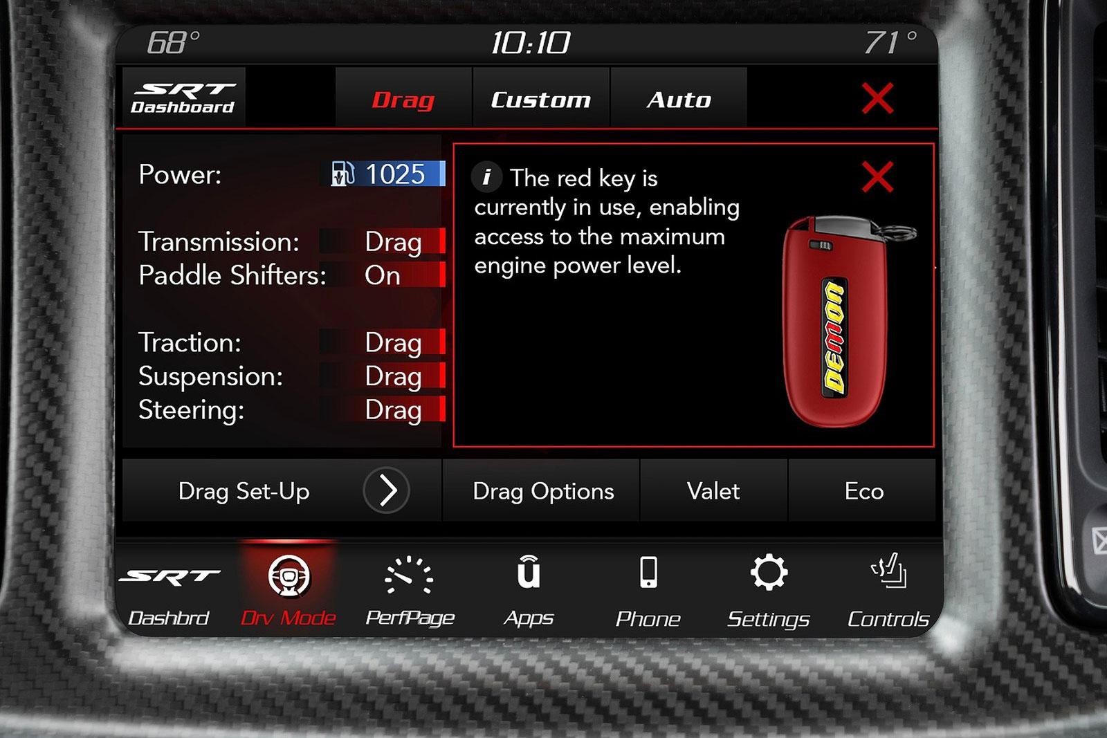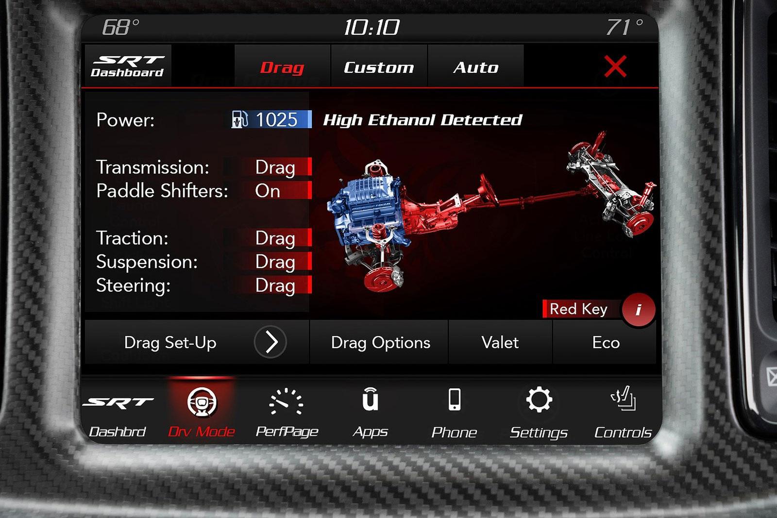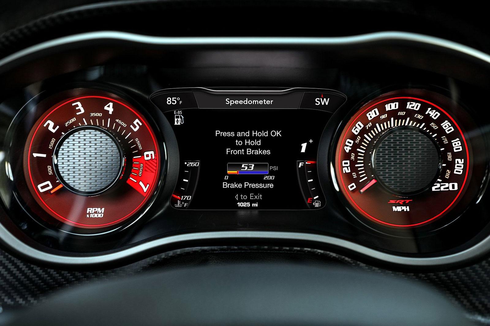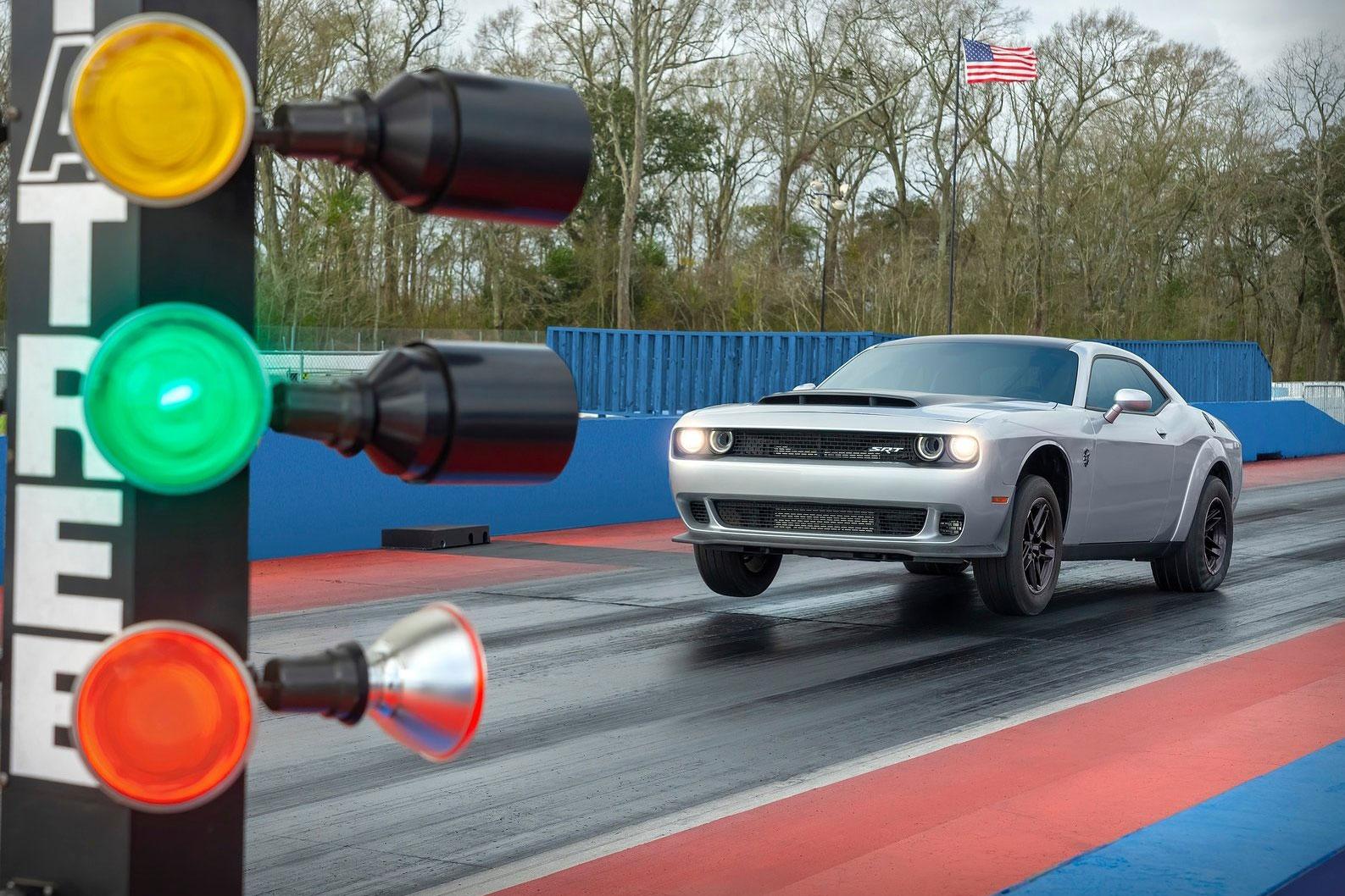 „Korrekt betankt“ soll der SRT Demon 170 in 1,66 Sekunden auf 96 km/h beschleunigen und die Viertelmeile in 8,91 Sekunden knacken. Der Topspeed nach den rund 400 Metern liegt dann bei 243,2 km/h.