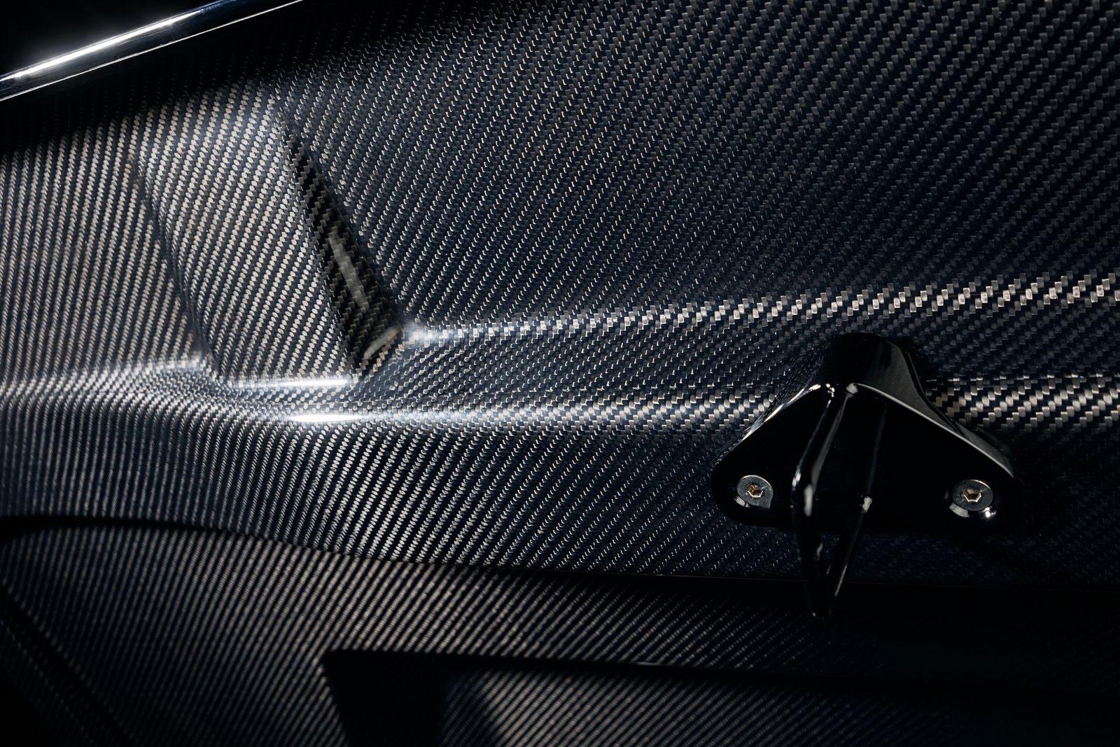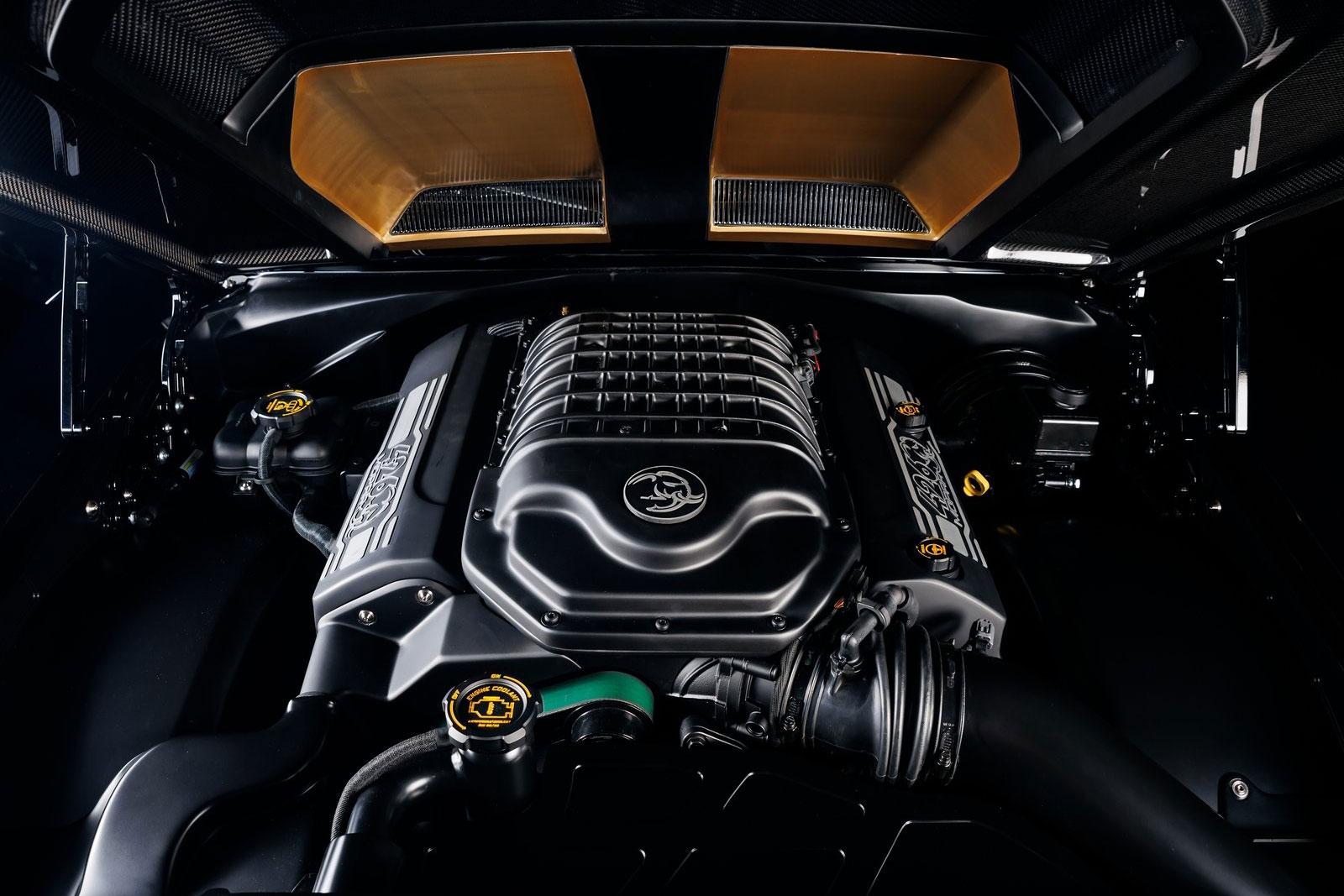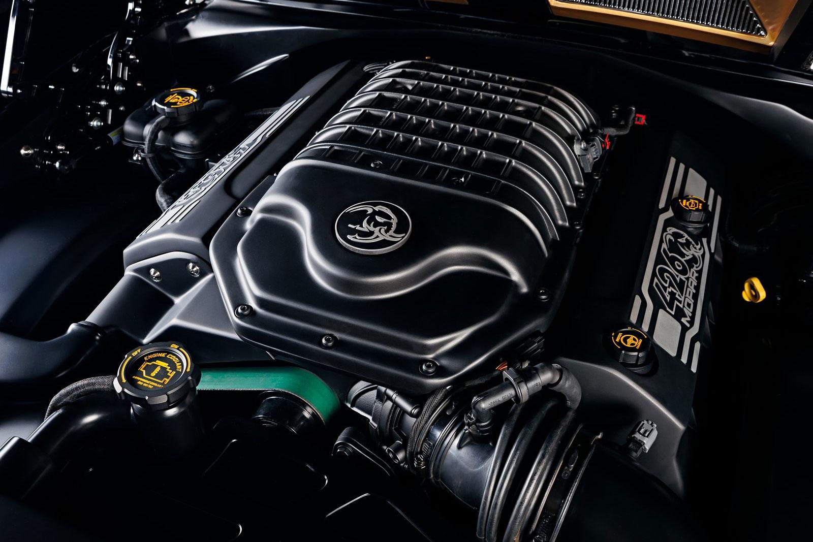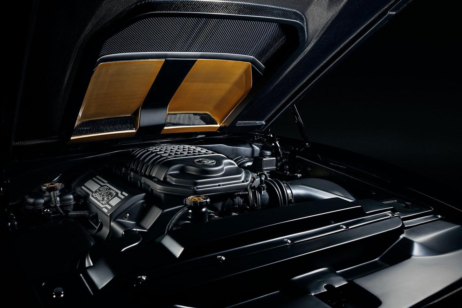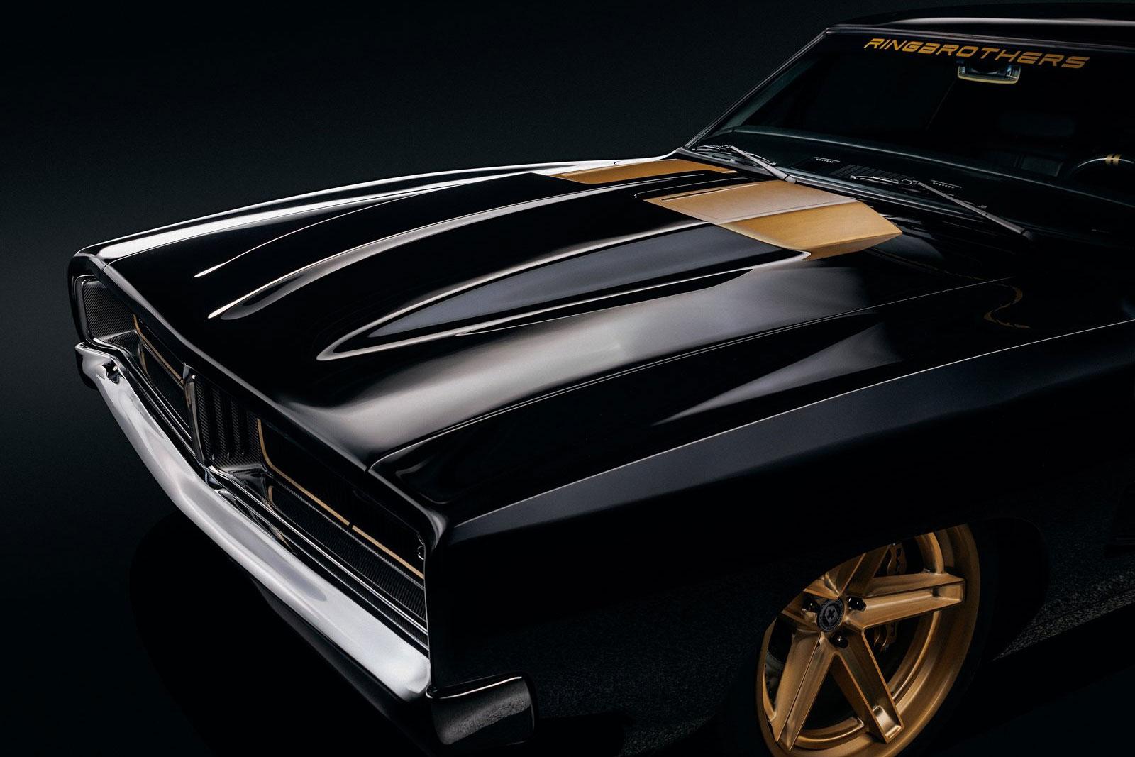 Unter der maßgefertigten zweiteiligen Kohlefaserhaube, die einen beeindruckenden, aus einem massiven Block gefrästen Grill trägt, wurde der Motor um 2,5 Zoll (6,35 cm) nach hinten verschoben, um eine optimale Gewichtsverteilung zu erreichen. Die Ästhetik des TUSK spiegelt die erstklassige Handwerkskunst und Präzision von Ringbrothers perfekt wider. Die Front des umgebauten Fahrzeugs beeindruckt mit einer einteiligen Kohlefaser-Umrandung und einem aufwändig gefrästen Chromdetail, das den „Blind-Eye“-Kühlergrill hervorhebt. Jedes Detail wurde berücksichtigt, von handgefertigten Stoßstangen bis hin zu maßgeschneiderten Lufteinlässen, um dem Charger ein markantes und zeitloses Erscheinungsbild zu verleihen.