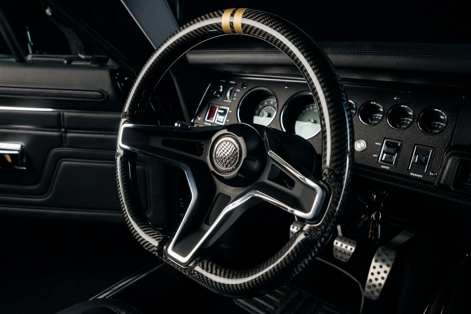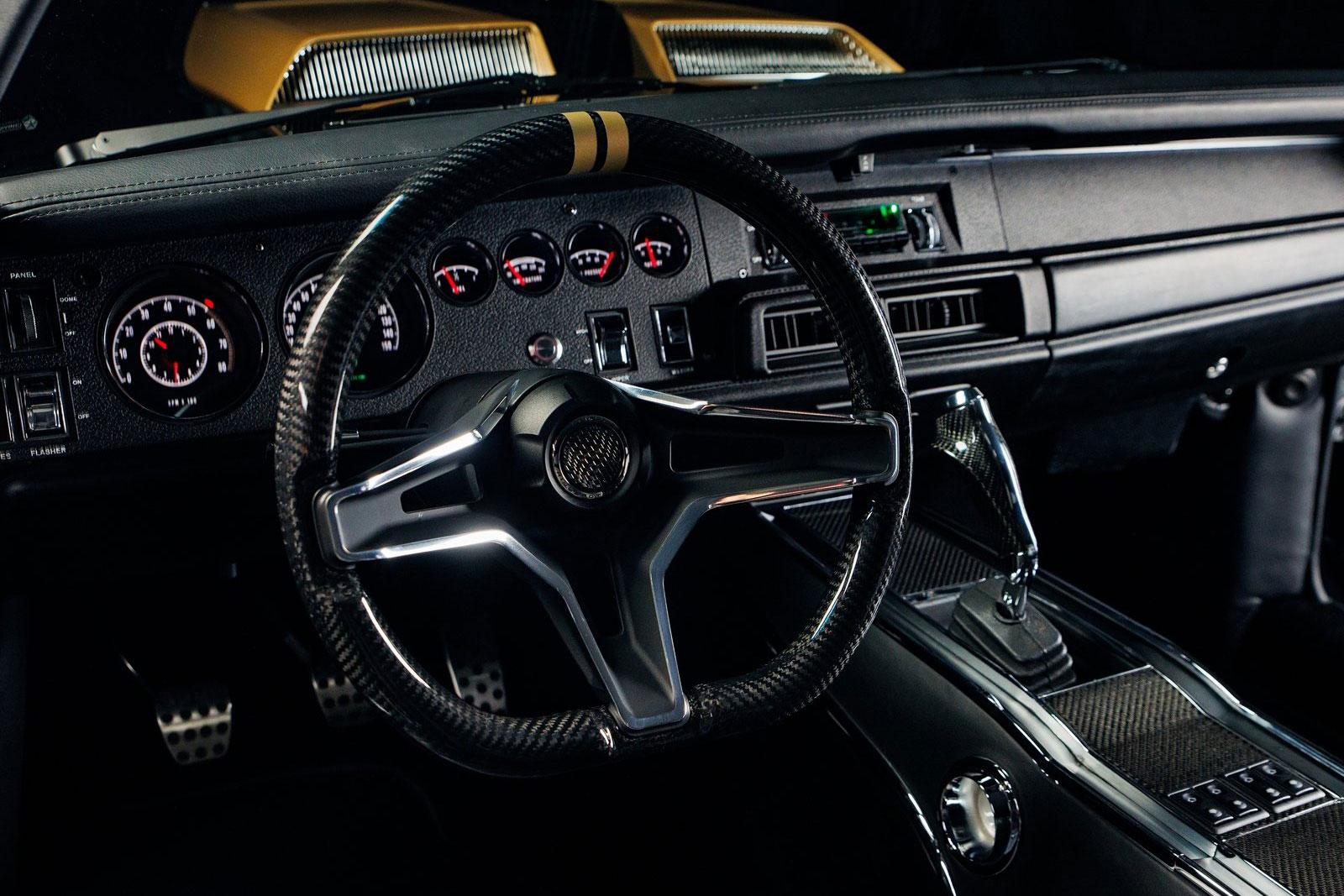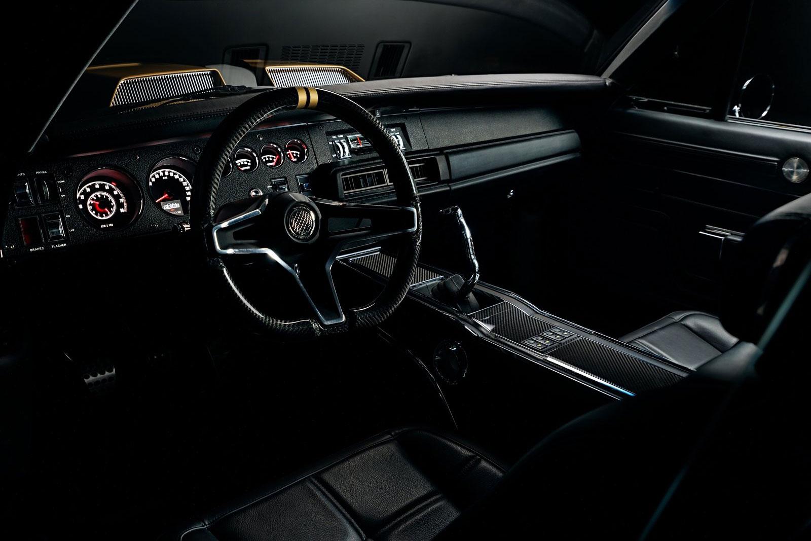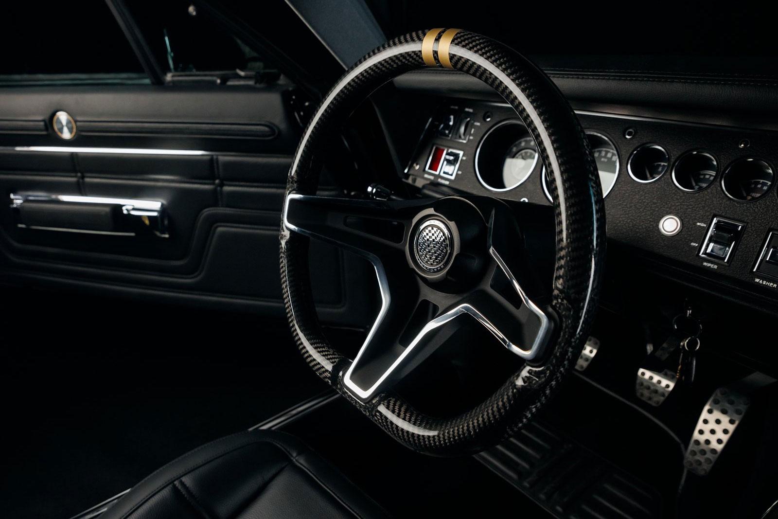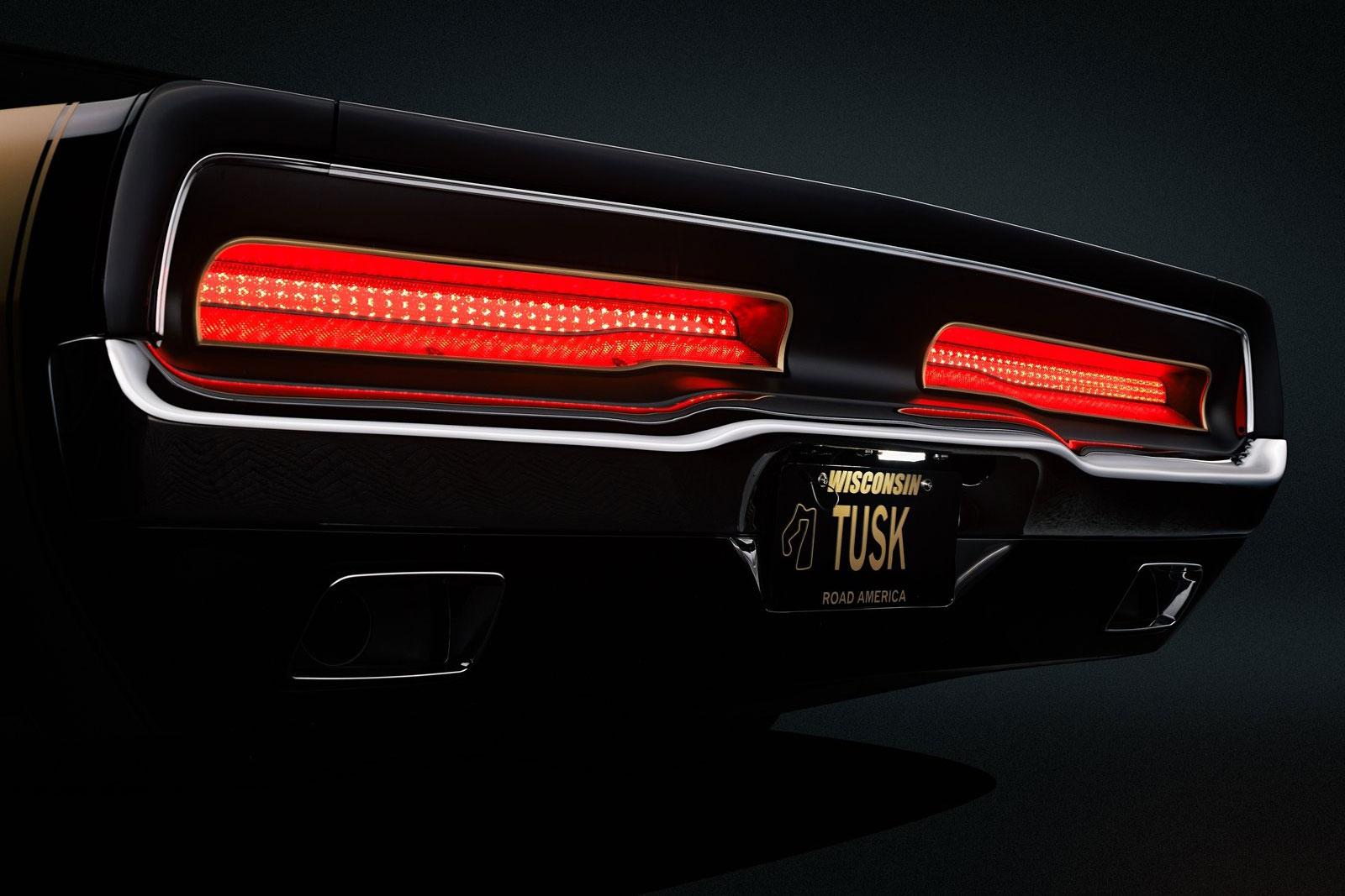 Im Inneren setzt der TUSK seinen luxuriösen Stil fort, der durch eine von Upholstery Unlimited maßgeschneiderte Lederausstattung, eine Kohlefaser-Konsole und einen stylischen „Pistolengriff“-Schalthebel aus Kohlefaser geprägt ist. Der gesamte Um- oder besser Aufbau, der über 5.000 Arbeitsstunden in Anspruch nahm, ist nicht nur eine Hommage an den Charger der zweiten Generation, sondern auch ein Beweis für das handwerkliche Können von Jim und Mike Ring – den Ringbrothers.