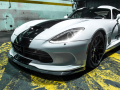 {adsense}Natürlich optimiert der Tuner die muskulöse Viper parallel zum Power-Upgrade auch aerodynamisch sowie optisch: Der hauseigene Sichtcarbon-Aerodynamik-Kit setzt sich aus einer weit nach vorn ragenden Frontspoilerlippe, einem nicht minder üppig dimensionierten Heckspoiler sowie einem Heckdiffusor-Unterteil zusammen. Besonders gut kommen die Carbon-Parts natürlich – wie bei dem hier gezeigten Modell – in Verbindung mit einer hellen Karosseriefarbe zur Geltung.