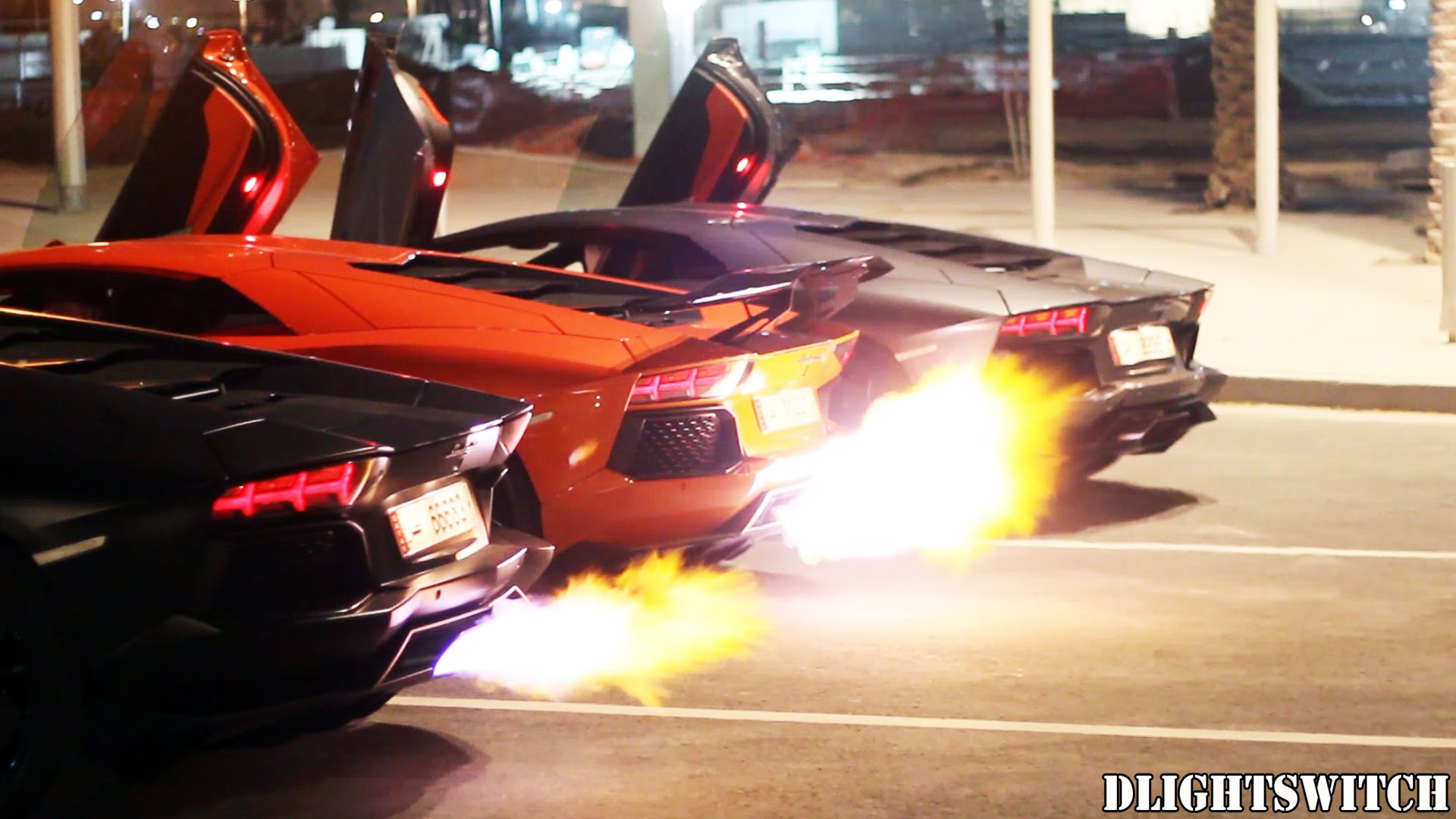 Drei Lamborghinis beim Flammenwerfer-Duell