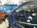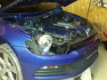 {1}Rausgeflogen und durch andere Teile ersetzt worden sind unter anderem der Motor, das Getriebe, der Vorderachsenträger und das Fahrwerk. Einzug gehalten hat dagegen ein Audi 2,5-Liter-Diesel Fünfzylinder-Block in Kombination mit einem Audi S2 20V Kopf und einem Precision PT67/68 Turbolader sowie das aus einem A4 Quattro stammende Allradsystem. In der Summe sollen so mit 2,0 bar Ladedruck mindestens 800 PS und 1.000 Nm Drehmoment bereitstehen, um den Scirocco möglichst lange „quer“ zu beschleunigen. Wirft man einen Blick in den Innenraum, so bekommt man einen recht interessanten Einblick in das Sprit- und Kühlsystem, das aus Platzgründen auf die Rückbank ausweichen musste. Ebenfalls voll funktional sind die seitlichen Lüftungsschächte, die dem System zusätzliche Kühlluft zuführen und auch sonst ist nicht mehr viel vom Standard-Interieur geblieben. Vielmehr herrscht Rennwagen-typische Kargheit. Wer Kenneth und den vielleicht stärksten Scirocco der Welt einmal in Aktion erleben möchte, dem seien die nachfolgenden Videos ans Herz gelegt.
