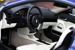 Womit wir dann auch beim Thema wären: Bei 1,77 Meter Körpergröße kann es im Artega schon knapp werden mit der Kopffreiheit, zumal die Sportsitze nicht höhenverstellbar sind. Auch die Frontscheibe geht früh ins Dach über und so ist die Sicht nach schräg-oben schlicht nicht vorhanden. Insgesamt ist der Artega kein Raumwunder, alles ist eng und direkt auf den Fahrer zugeschnitten. Näher betrachtet wirkt das Interieur auch für ein Kleinserienmodell recht hochwertig verarbeitet und muss sich nicht vor den „großen“ verstecken. Dafür ist ihm eine gewisse Langeweile bei der optischen Anordnung von Lüftungsdüsen und Mittelkonsole anzukreiden. Und auch ergonomisch ist das Arrangement nicht optimal durchdacht.  Leicht beschmutzbarer Klavierlack und einige, vielleicht etwas zu verspielte und verschnörkelte Details formen dabei eher den Charakter des Sportwagens, der als Exot unter den Großen rangiert und auch genau mit diesem Image Fuß fassen muss. Störender sind da schon eher die zu kleinen, mitdrehenden Schaltpaddel hinter dem Lenkrad. Ob die Ingenieure deshalb dafür gesorgt haben, dass das DSG ärgerlicherweise auch im manuellen Modus am Drehzahllimit automatisch hochschaltet? Dies ist auf jeden Fall ein großes Manko und sorgt öfter mal dafür, dass man am Ende doch wieder nur im Automatikmodus fährt. Schaltet man nämlich zu spät, schaltet die Automatik hoch, wertet den eigenen Schaltvorgang dann aber als weiteres Hochschalten – schnell befindet man sich einen Gang zu hoch in der Skala. Hier besteht Verbesserungsbedarf.