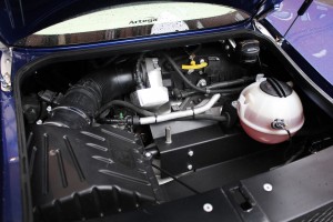Hamburger Regenwetter und eine Fahrzeit von knapp über 30 Minuten. Na, das kann ja ein feucht-fröhliches Intermezzo werden. Kandidat für den Kurztrip in die halblegalen Sphären des hanseatischen Industriegebiets: ein dunkelblauer Artega GT, innen gehüllt in hellbeige bis weiße Kuhhaut. War die Frage ob die Jeans neu ist also doch berechtigt. In der Hand liegt ein Schlüssel der sich klar der Firma Volkswagen zugehörig zeigt. Der Schlüssel, der einen Eintritt gewährt in eine schmalgeschnittene Kanzel. Sie verbindet den Fahrer mit der 1285-kg-Flunder und 300 PS hinter den engen, aber bequemen  Komfortschalensitzen. Diese PS stammen, man mag es kaum glauben, aus einem Passat. Allerdings aus einem R36 – der 300 PS starken Speerspitze. Beim Artega sorgt das Aggregat für ein Leistungsgewicht von 4,28 Kilogramm pro Pferdestärke. Den direkten Vergleich muss sich der Porschekonkurrent aus Delbrück da gefallen lassen: die Aktuelle Variante des Cayman S bringt es trotz Mehrgewicht auf 4,21 kg pro PS. Also eine wirklich enge Geschichte.