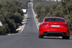 Doch wer dem 4,64 Meter langen und 1,37 Meter hohen RS verfallen ist, seinen bis 8500 Umdrehungen fauchenden, wohlkomponierten V8-Sound nicht mehr aus dem Ohr bekommt, der schei*** auf den Minderverbrauch und lässt es richtig krachen. Ob im Automatik-Modus, über die Schaltwippen hinterm Lenkrad oder in der manuellen Gasse des Schaltknaufs – jeder Gangwechsel ist ein Genuss. Unauffällig, wenn’s gewünscht wird, ruppig und mit Zwischengas wenn’s härter zur Sache gehen soll. Das Siebengang-Doppelkupplungsgetriebe macht wie gewohnt einen guten Job und speziell das „Flippern“ hinterm Lenkrad ist eine wahre Freunde – nicht nur auf den Straßen rund um Marbella, auf denen wir mit dem RS5 jetzt erstmals auf Tuchfühlung gehen, auch auf dem Ascari Racetrack, der uns ebenfalls zur Verfügung steht. Auf der knapp vier Kilometer langen Strecke muss sich der auf Wunsch 280 km/h schnelle Audi aufs Härtestes auf den Zahn fühlen lassen und so stehen nach getaner Arbeit nicht nur neue Reifen an, auch die wild knackenden Bremsscheiben können ein Liedchen von der harten Gangart singen.