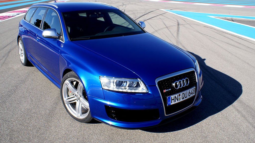 Wir sind in Frankreich, genauer gesagt in Le Castellet. Neben der Saison ist hier nicht wirklich viel los, doch das interessiert heute wirklich niemanden. Zusammen mit einigen Dutzend weiteren deutschen Motorjournalisten bin ich zusammen mit Tim angereist, um auf der nahe gelegenen Rennstrecke Paul Ricard dem neuen Audi RS6 Avant auf den Zahn zu fühlen. Hier kurz die Eckdaten: Unter der Haube steckt der aus S6 und S8 bekannte V10, der mittels zweier Abgasturbolader im RS6 allerdings zwangsbeatmet wird. Mit bis zu 0,7 bar drücken die beiden Verdichter die Luft in die Brennräume. Leistete der Motor im S8 bisher immerhin 450 PS, geht’s im RS6 rauf auf 580 PS und damit um 73 PS am BMW M5 Touring vorbei. Dem hat der Audi außerdem den Allradantrieb voraus, der die 650 Newtonmeter Drehmoment konsequent in Vortrieb umsetzt. Ach was red ich, der quattro krallt sich in den Asphalt und lässt nicht mehr los. In 4,6 Sekunden geht’s bis 100, nach nur 14,9 Sekunden liegen 200 Sachen an.