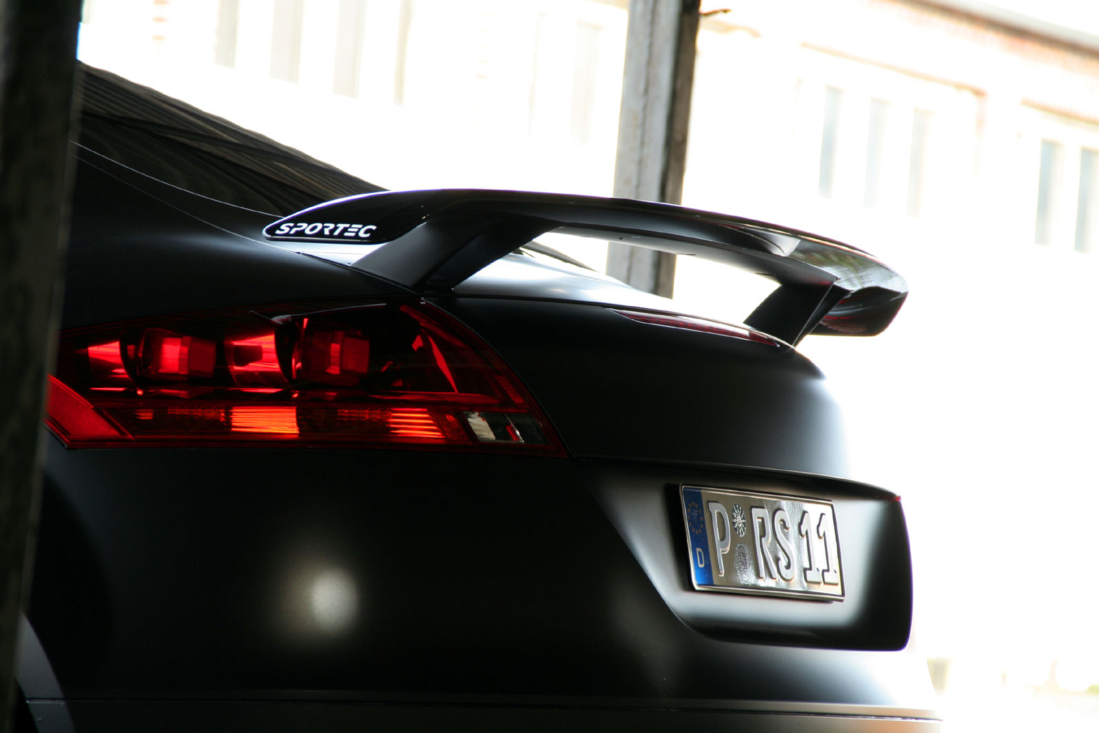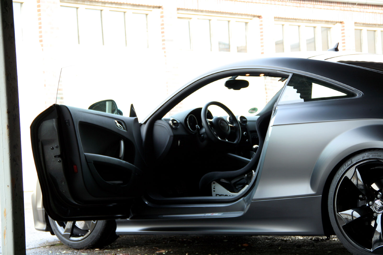Der Audi steht nun sehr tief in den Radhäusern, Räder und Karosserie wirken wie eine perfekte Symbiose zu einem einzigartigen Kunstwerk. Unterstrichen wird das Gesamtkonzept vor allem durch die auffällige mattschwarze Folierung. Hierfür verlangt Avus 1999 Euro. Zweifellos ist die „Farbe“ eines der Highlights am Fahrzeug – kein Wunder, dass sich dieser Trend aktuell so ausbreitet. Doch wer Avus Performance, Partner von Sportec, kennt, weiß, dass es damit nicht getan ist. Der Tuner serviert uns ein vorzügliches Hauptgericht, das mehr als nur das Sahnehäubchen darstellt: Der Motor wird richtig scharf Gewürzt! Der Wagen bekommt eine Edelstahl-Abgasanlage mit Sportkatalysator, eine veränderte Motorsteuerung und einen modifizierten Turbolader. Da ist natürlich Klar, dass es sich um eine Kalorien- pardon – Newtonmeterbombe handelt. Genauer gesagt kommen gewaltige 460 PS und 640 Newtonmeter Drehmoment heraus. Vergleich gefällig? Selbst der R8 V10 kommt nur auf fast lächerlich wirkende 530 Newtonmeter. Für dieses Hauptgericht muss man allerdings auch schon etwas tiefer in die Tasche greifen: Die sogenannte Stufe 3 von Avus schlägt mit ca. 10.000 Euro zu Buche (endgülige Preise ab Januar 2010).