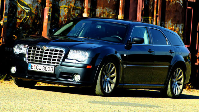 Tief kauert sich der fünf Meter lange Kombi zwischen die gewaltigen 20-Zöller. Die Alus reichen fast zum Schritt des Betrachters, die Motorhaube ist auch nicht viel höher. 255er Schlappen hat Chrysler der SRT8-Version spendiert, ob die dem Drehmoment von 569 Nm standhalten können, muss sich allerdings noch zeigen. Für ausreichend Bremsleistung sollte angesichts der 360 mm messenden Bremsscheiben (hinten: 350 mm) nebst passender Brembo-Backen jedenfalls gesorgt sein.