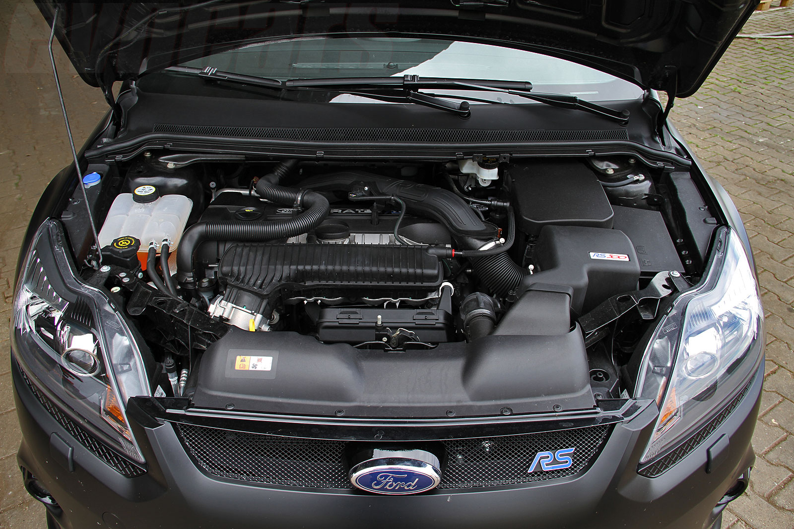 Denn vom Ford-Presse-Vize erfahren wir: „So wie es aussieht, werden fast alle der 55 deutschen Exemplare des RS500 in Sammlungen verschwinden und nicht auf der Straße zu sehen sein.“ Was für eine Schei***! Solch ein begnadetes Auto seinem vorbestimmten Lebensraum vorzuenthalten ist aus unserer Sicht ein Frevel sondergleichen. Doch ein Ausweg ist in Sicht: Wer keinen der insgesamt 500 Wagen abbekommen hat, der kann sich seinen Focus RS zum RS500 umbauen lassen. Und das mit dem Segen von Ford. Der britische Spezialist Mountune Performance verpasst dem RS die gleichen Zutaten, die auch schon dem 500er zu mehr Power verhelfen. So stimmen auch die Leistungs- und Fahrdaten nach der Brit-Kur überein.