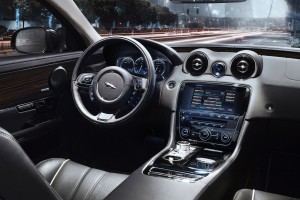 Unbenommen von der gewählten Motorisierung, egal ob mit langem oder kurzem Radstand empfängt der neue XJ seine Passagiere im Innenraum mit jeder Menge Luxus. Die teils gewagten, aber frei wählbaren Farb- und Material-Kombinationen aus Leder, Holz, Alcantara, Carbon, sowie das sehr gute Raumgefühl und eine nahezu verschwenderisch guten Haptik machen den Jag zu etwas Besonderem. Die Mittelkonsole kreuzt das Fahrer-, Beifahrer-Gespann sehr hoch, das Armaturenbrett sitzt dafür schön tief. Alles in allem scheint das Cockpit seine Insassen zu umschließen, ohne sie einzuengen. Im Ergebnis können wir dem großen Engländer eine gewisse emotionale Sportlichkeit nicht absprechen. Allein die durch Abwesenheit glänzenden Haupt-Instrumente, die in ihrer Ganzheit durch einen LCD-Bildschirm ersetzt wurden, sowie die etwas billig anmutende Analog-Uhr zwischen den mittleren Lüftungsdüsen sind Geschmackssache und könnten einigen Jag-Fans störend aufstoßen.
