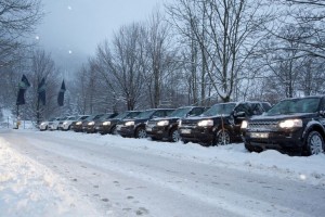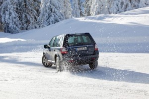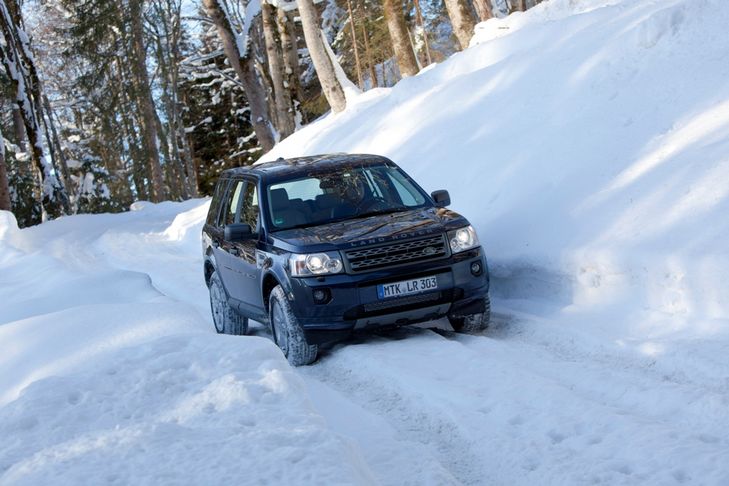 Doch zuerst muss der neue Freelander auf der Straße zeigen, was er kann. Das 2.2 Liter große Selbstzünder-Triebwerk leistet in der von uns getesteten SD4 Variante 190PS und ist serienmäßig mit einer neuen sechsstufigen Automatikschaltung kombiniert. Zwar grummelt das Common-Rail-Triebwerk im Leerlauf deutlich hörbar, doch das saftige Drehmoment aus dem Drehzahlkeller tröstet darüber hinweg. Exakt 420Nm sind es, die den kleinen Allradler ab 2000 Touren kraftvoll beschleunigen und das Aufhalten in höheren Drehzahlregionen fast überflüssig macht. Das überarbeitete Getriebe, das nun über eine optimierte Abkoppelsteuerung im Stand verfügt, trägt ebenfalls zum hohen Antriebskomfort bei, denn es kann nicht nur auf passend abgestufte Übersetzungen zurückgreifen, es wählt die Schaltpunkte auch zu einem erfreulich frühen Zeitpunkt. So kamen wir auf unserer Testrunde, die neben einer kurzen Autobahnsektion auch ein wenig unbefestigte und tief verschneite Waldwege beinhaltete, auf einen Durchschnittsverbrauch von 8.6 Litern. Der Papierwert von 6.2 Litern ist damit zwar deutlich verfehlt, der von uns gefahrene Schnitt ist aber dennoch für ein 1.8t Fahrzeug mit knapp 200PS ein durchaus akzeptabler Wert.
