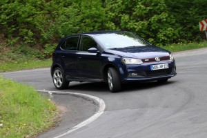 Ist die passende Kurveneingangsgeschwindigkeit erst mal gefunden und der richtige Gang anhand der am Lenkrad befindlichen Schaltpaddeln sortiert, kann es zur Paradedisziplin des Polo GTI gehen: das Kurvenräubern. Wobei ihm schnellere Kurven fronttrieblertypisch besser zum aggressiv-sportlich dreinblickenden Gesicht stehen als enge Kehren – dort schiebt er trotz elektronischem Quer-Sperrdifferential XDS über die Vorderräder, zerrt aber immerhin kaum am Antriebsstrang und überlässt das Lenkrad weiterhin dem Fahrer. Allgemein fällt das Dynamik-Gesamtbild neutral bis untersteuernd aus. Der GTI ist einfach, gutmütig, verbindlich – nie überfordernd. Ähnlich sieht es bei dem Fahrwerk aus: genügend Rückmeldung, ohne den Rücken zu malträtieren, an der Grenze der Langstreckentauglichkeit und ebenso noch einen ticken zu weich für die Rennstrecke. Ein für Volkswagen üblicher, perfekter Kompromiss, um alle Bedürfnisse so gut es eben geht zufrieden zu stellen, aber nichts zu bevorteilen.