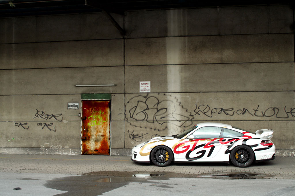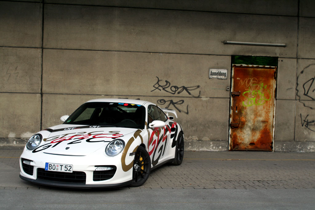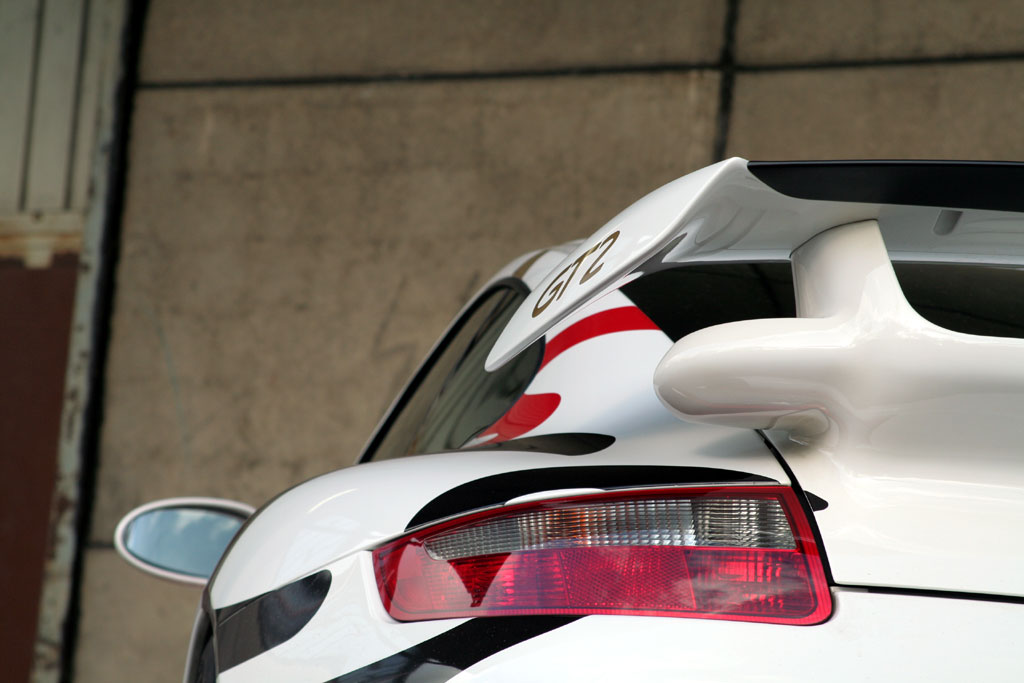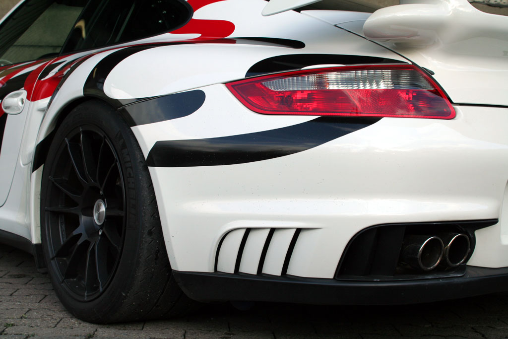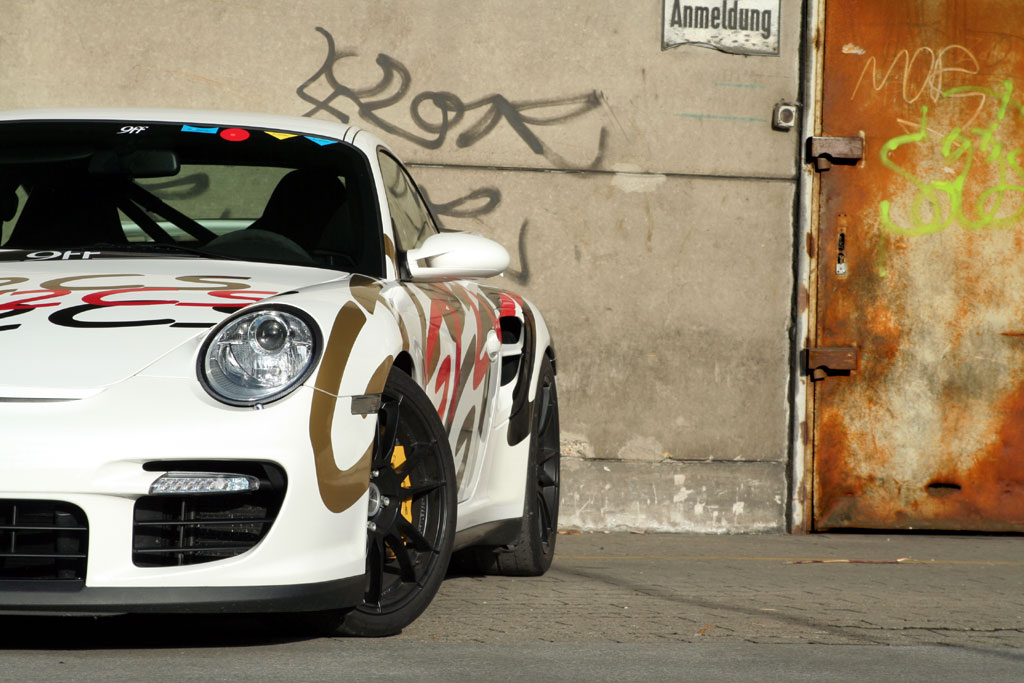 Nachdem der Boxer warmgelaufen ist, kann ich nicht mehr an mich halten und gebe dem hammerharten Porsche die Sporen. Schließlich bin ich ein Mann. Aber leider kein Rennfahrer. Mein Hände werden feucht und feuchter als der GT2 anfängt zu fliegen. Jede Bodenwelle, jede Fuge schickt harte Schläge ins Cockpit und bei 300 Sachen ist am Lenkrad harte Arbeit angesagt. Kein Vergleich zum brutalen 320-km/h-Cruisen im Audi RS6R von MTM. Tempo-Schilder und Ausfahrten flitzen vorbei, die Titanflöte spielt eine wundervolle Melodie und das fahrwerksbedingte Zittern der Xenonfunzeln räumt die linke Spur erfolgreich frei. Aber mal ehrlich: Mit stumpfem Geradeausfahren ist der GT2 von 9ff sträflich unterfordert. Zwar versuche ich noch, auf der Landstraße ein geeignetes Revier zu finden, doch vergebens. Dieses Ding ist ein Monster. Ein Biest. Ein Zeitenjäger, der im drögen Alltag und auf öffentlichen Straßen wie Boxer Mike Tyson hinterm Schreibtisch wirkt. Und wir alle wissen, zu was „Iron Mike“ fähig ist (Stichwort Ohr).