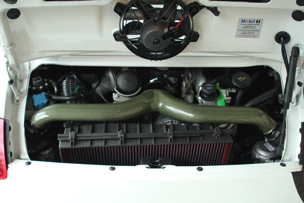 Zum Thema Auspufflautstärke klärt mich der 9ff-Mann auf: „Die können wir stufenlos raufschrauben. Wir hatten schon einen Kunden, der wollte das maximal Mögliche. Bei 130 Dezibel hat’s dann fast das Messgerät gekillt. Eingetragen bekommt man so was natürlich nicht mehr. Aber gut, des Menschen Wille ist sein Himmelreich.“ Na dann, …
