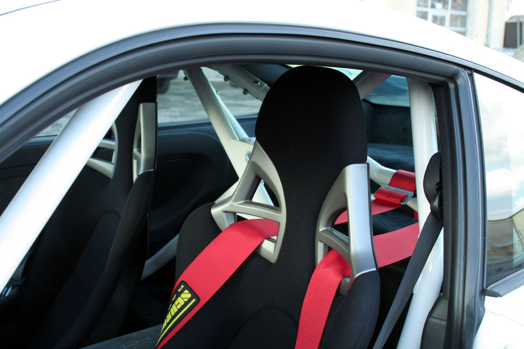 Um das Cockpit des Sportlers zu entern, geht’s an den Streben des Überrollkäfigs vorbei und rein ins Renngestühl mit Sechs- und Dreipunktgurten. Für die Fahrt ins Büro tut’s die Alltagssicherheit, bei der Nordschleifen-Hatz bedarf es der Sechsfachsicherung. Der Dreh am Schlüssel erweckt das hochgezüchtete Boxerbiest im Heck zum Leben. Wer sich ans energische Zutreten des Kupplungspedals gewöhnt hat, der stampft zwar das Pedal bei jedem anderen Wagen ins Bodenblech, bekommt den hochgezüchteten 9ff-Schwan dafür aber auch geschmeidig vom Fleck. Von jetzt an heißt es genießen.