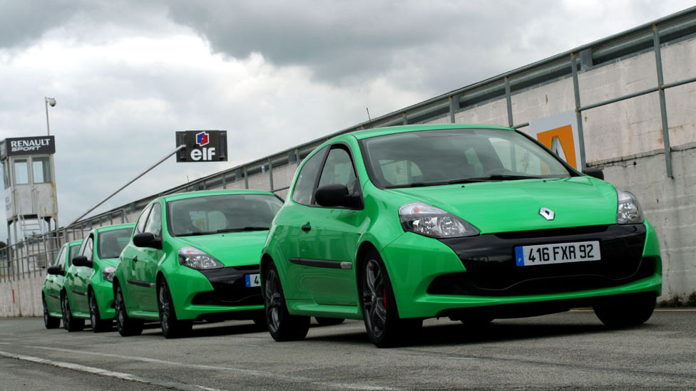 Deutlich oberhalb des Clio GT rangiert der Clio RS. Schon vor dem Facelift durfte der deutlich aggressiver gezeichnete Rabauke die Speerspitze in der Baureihe markieren. Zum 2010er Modelljahr bekommt auch der RS einige Optikretuschen. Außerdem erfährt der Zweiliter-Sauger eine dezente Kraftkur um vier PS von 197 auf jetzt 201 PS (215 Nm). Viel entscheidender ist allerdings die neu eingeführte Aufsplittung des Clio RS in zwei „Unterkategorien“. Als Clio Renault Sport gibt sich der 224 km/h schnelle Kompakte als luxuriöser Gran Turismo, der spartanischer ausgerüstet Clio RS Cup predigt den Verzicht. Elektrische Fensterheber, ein längsverstellbares Lenkrad, Klimaanlage, Radio sowie eine hochwertige Rücksitzbank sucht man beim Cup vergeblich. Stattdessen finden ein sieben Millimeter tiefergelegtes Cup-Sportfahrwerk und ein Kilo pro Felge leichtere Alus ihren Weg in den sportlichen Kompaktwagen. In Addition mit dem durch erwähnte Maßnahem erreichten Gewichtsverlust von 36 Kilo, soll sich der Clio RS Cup besser auf der Rennstrecke behaupten können. Von der eher bescheidenen Sprintzeit von 6,9 Sekunden auf Tempo 100 kommt aber auch der Cup nicht runter. Doch auch so sieht Renault das Haupteinsatzgebiet des abgespeckten 201-PS-Clio auf besagten Rennstrecken. In der Woche mit dem Wagen zur Arbeit fahren, am Wochenende Nürburgring, Oscherslebenring und Co. unsicher machen – so verkauft sich der Neuling dem Betrachter.