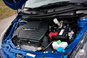 Und doch ist der Swift trotz Klimaautomatik, Xenon-Licht, Bluetooth, Tempomat und all dem anderen Komfort ein herrlich leichtes Auto. Gute 1100kg weist das Datenblatt aus und das hat viele Effekte. Zum einen ist das gut für den Verbrauch, zum anderen fürs Handling – und für die Performance im Allgemeinen natürlich auch. Denn wo kein Gewicht, da muss der Motor auch nicht schwer schleppen. So relativieren sich auch die 136 PS. Vor allem, wenn sie so dargereicht werden wie im Suzuki. Kein Drehmomenthammer, der die Vorderräder hilflos überfordert, sondern echte PS, die ganz oben auf der Drehzahlleiter warten – und es ist eine lange Leiter. Eine richtig schön lange Leiter. Kletterst Du sie bei voll geöffneter Drosselklappe empor, wirft sich der Swift auch akustisch so richtig ins Zeug. Das saugt, schlürft und röhrt, dass es Dir die Nackenhaare aufstellt. Die Sechsgangbox passt mit ihrer kurzen Gesamtübersetzung und der mehr als engen Gangstaffelung wunderbar zum Charakter des Suzuki.