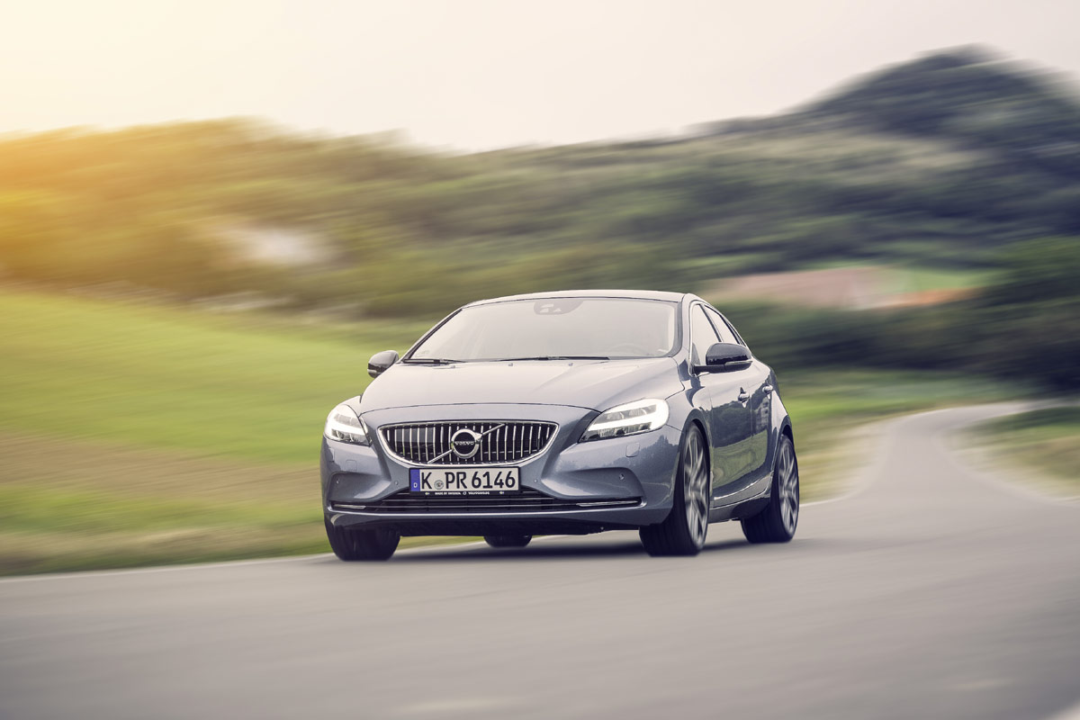 {1}Also Motor zünden und den Schaltknauf auf D schieben. Nein Schalter gibt es für das V40 Topmodell nicht, was aber keine Schande ist, denn im T5 werkelt eine feine 8-Gang Wandlerautomatik. Das überrascht, denn in dieser von Doppelkupplern dominierten Klasse glänzt der Schwede somit durch geschmeidige Gangwechsel. Doch wirklich sportlich ist das eben auch nach dem Polestar Eingriff zur Schaltzeitoptimierung nicht. Denn wenn man an den Paddels hinterm Lenkrad zupft, dauert speziell das Runterschalten auch im Sport Modus gefühlt eine kleine Ewigkeit. Wenn dann die nächstkleinere Gangstufe jedoch zur Verfügung steht, reissen statt 350 jetzt 400 Newtonmeter an der Vorderachse, die auch auf kurvigem Geläuf Dank Corner Traction Control gut auf den Asphalt zu bringen sind. Aktiv ist Volvos Torque Vectoring System bis 90 km/h, was in der Regel ausreicht, um ohne Traktionsverlust aus engeren Kurven herausbeschleunigen zu können. Leider animiert die sehr leichtgängige und etwas gefühllos wirkende Lenkung nicht wirklich zur Kurvenhatz und auch das verbaute Sportfahrwerk kann sich nicht entscheiden, was es sein will. Auf Querfugen stuckert es, doch beim Wedeln von Scheitelpunkt zu Scheitelpunkt lässt es die notwendige sportliche Härte vermissen.