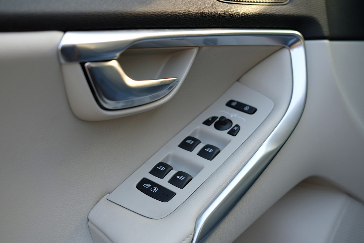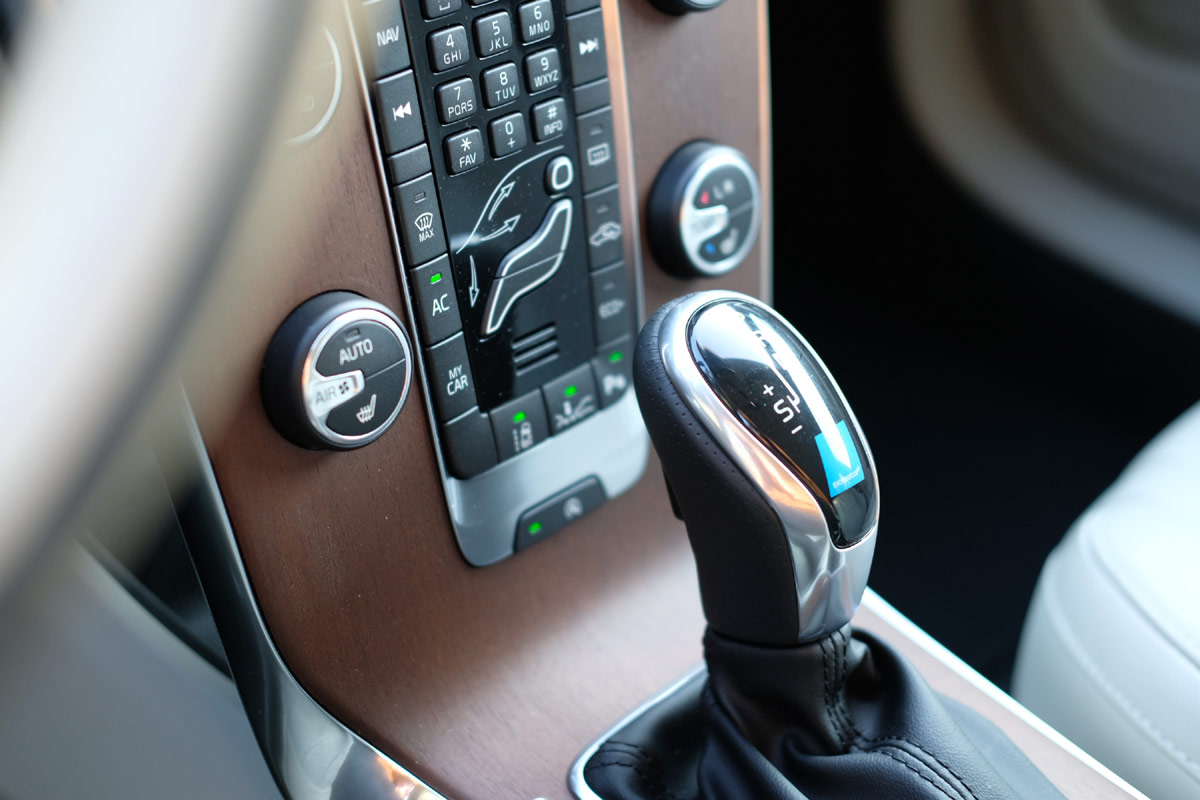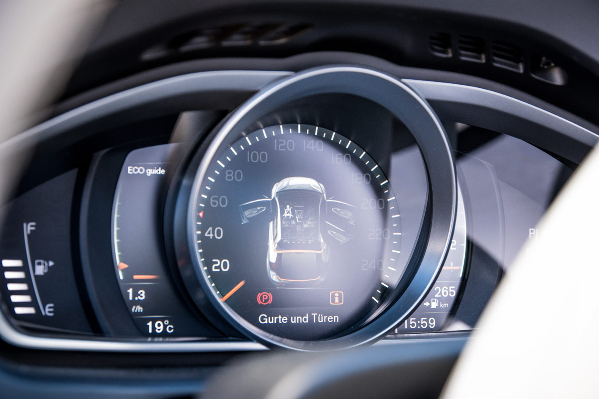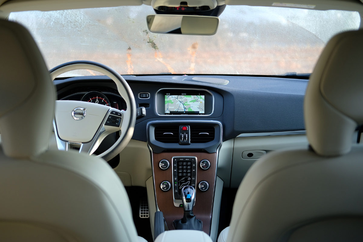 Versuch macht klug, darum rein in den 40er und kurz Innehalten, um das typische Volvo Wohlfühlmoment zu genießen. Ja das können Sie, die Schweden: Materialmix und Anmutung sind hervorragend. Das hellbeige Leder, die Holzintarsien und selbst die Narbung der Kunsstoffflächen laden zum Verweilen ein. Aber Sportlichkeit findet man auch hier nur mit der Lupe: auf dem Schaltknauf steht „Polestar“. Unabhängig von den fehlenden sportlichen Attributen hat sich mit dem Facelift nichts im Innenraum getan. Wozu auch? Denn die Ergonomie passt und hat man sich an das Bedienkonzept in der freischwebenden Mittelkonsole erst einmal gewöhnt, kommt man durchaus zügig in das richtige Menü. Nur am 7“ kleinen Farbdisplay merkt man, dass der V40 nicht mehr ganz auf der Höhe der Zeit ist. Besonders, wenn man bereits die schwedische Zukunft gefahren ist: den XC90 mit seinem sensationellen 9“ Touchscreen.