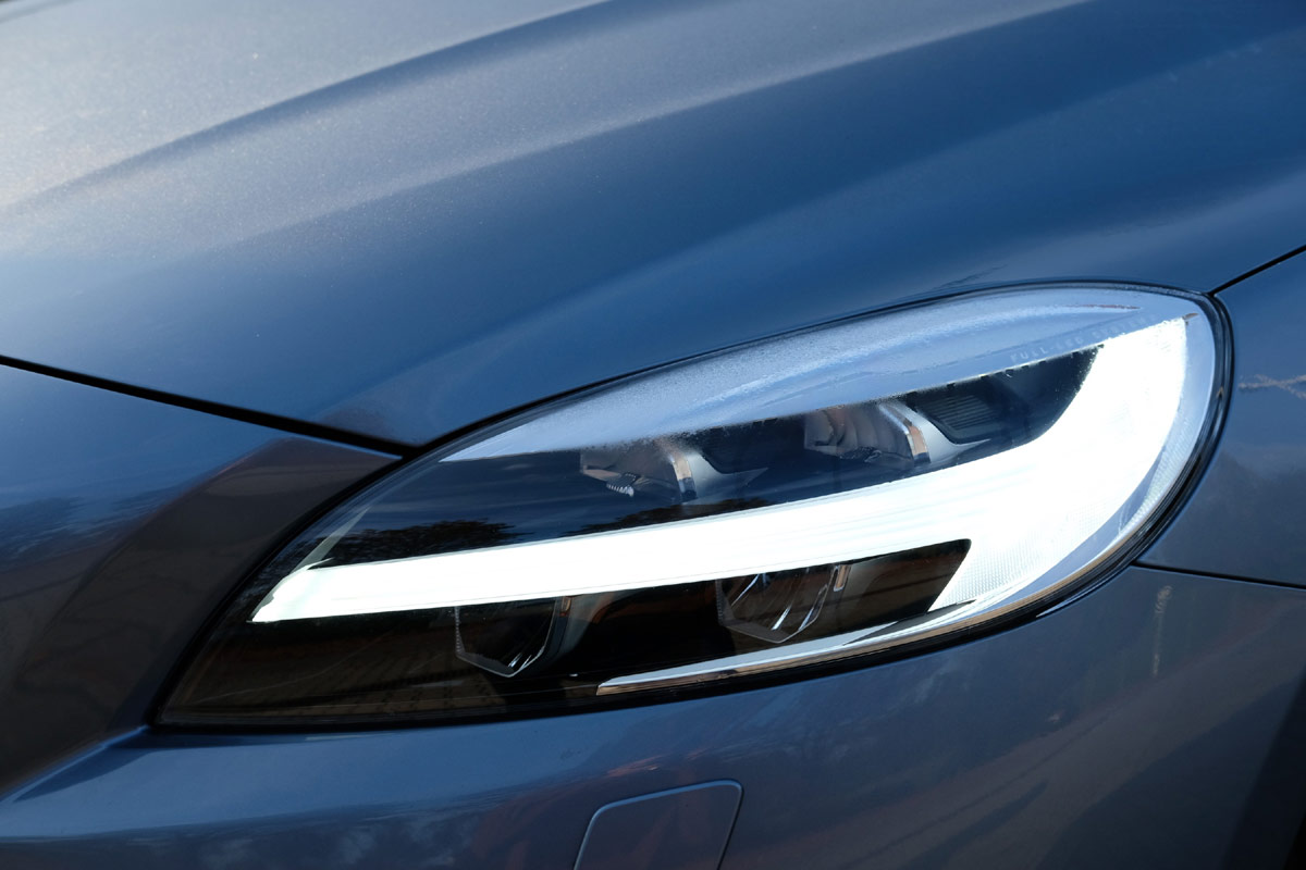 {1}Als dann der meistverkaufte Volvo in Europa in seiner frisch gelifteten und stärksten Form bei uns auf den Parkplatz rollt und uns mit seinen schicken „Thors Hammer“ Scheinwerfern anfunkelt, macht sich erneut Verwunderung breit. Dies soll das Sportmodell sein? Ok, die 235/35er Pirelli P-Zeros auf den schicken 19“ Polestar Felgen stehen dem Schweden wirklich gut und Dank des Polestar Komplettfahrwerks (nein, leider nicht das feine Öhlins Fahrwerk aus dem V60) hat der Fünftürer auch wirklich Stance. Aber wo ist das R-Design Paket bei unserem Testwagen geblieben? Tja, außer ein paar Polestar Gurney Flaps am Dachkanten Spoiler wird bei der höchsten Ausstattungslinie „Inscription“ keine Sportlichkeit zur Schau gestellt. Also ein Wolf im Schafspelz?
