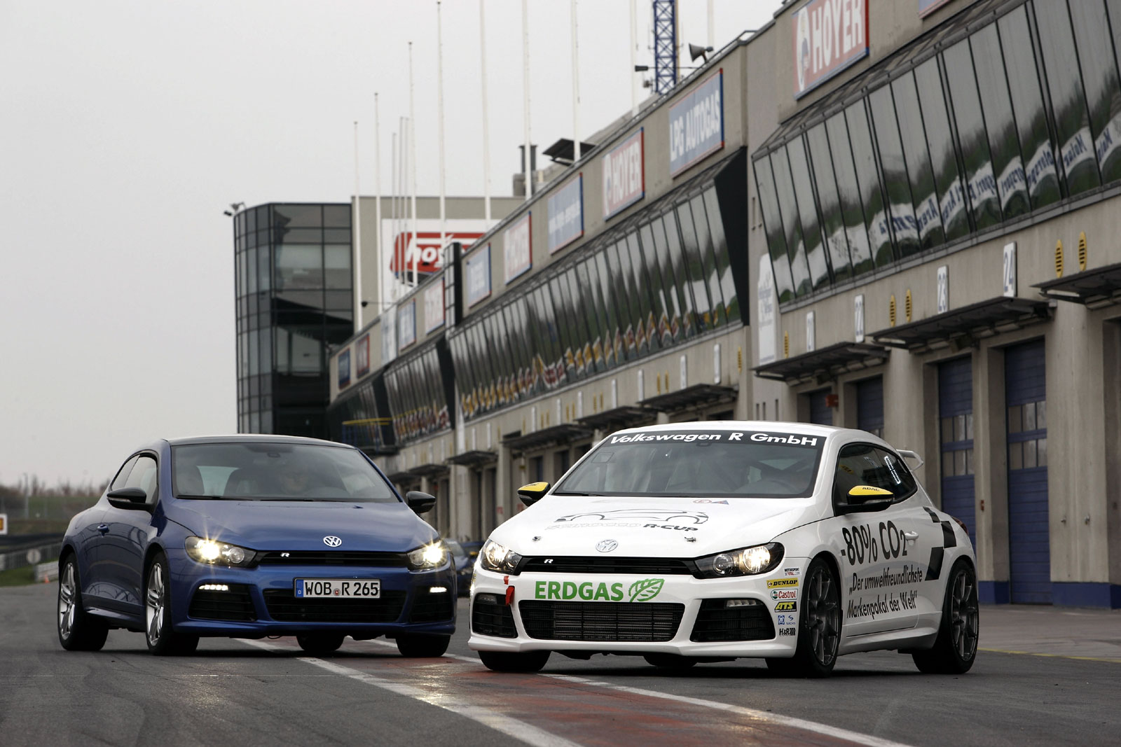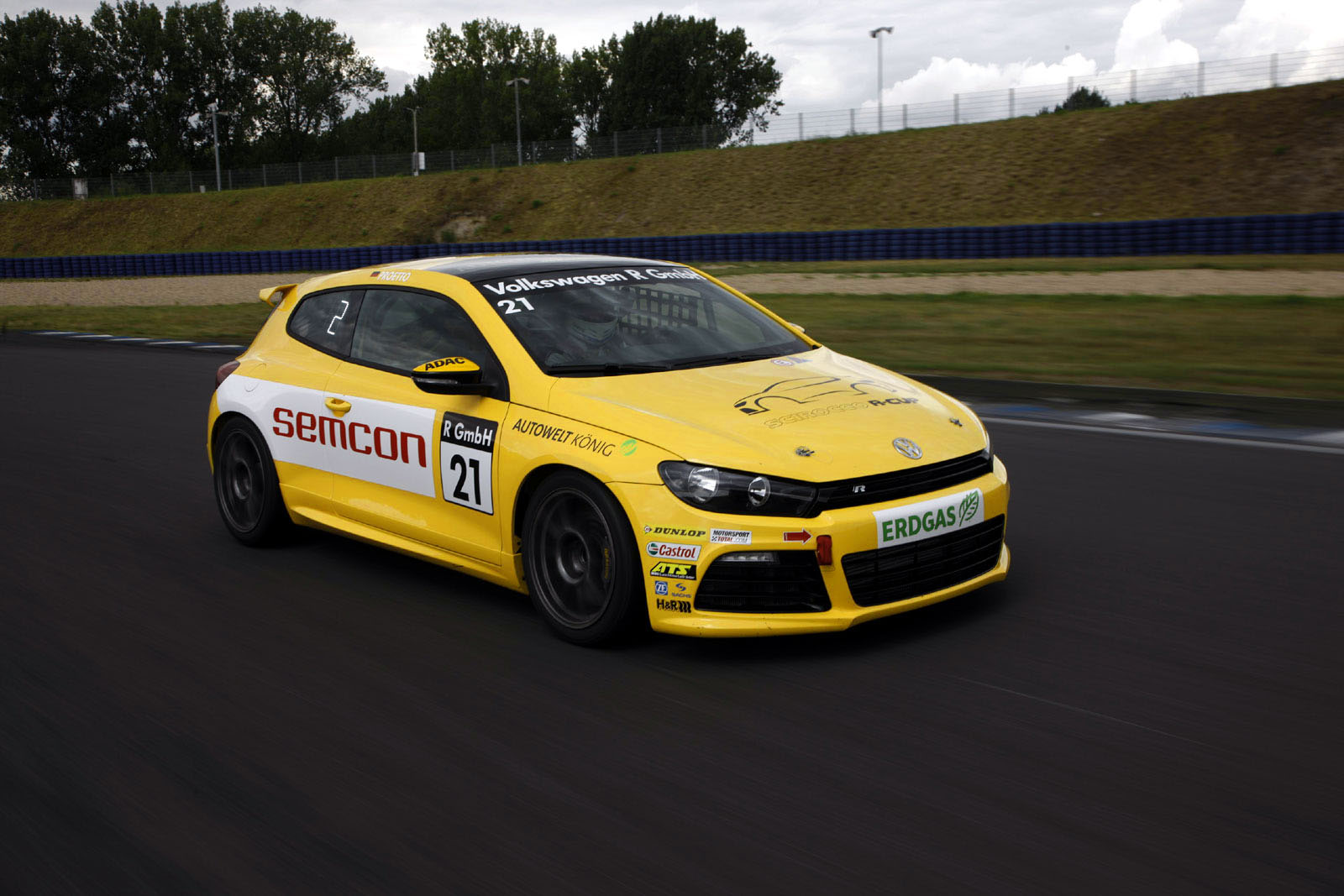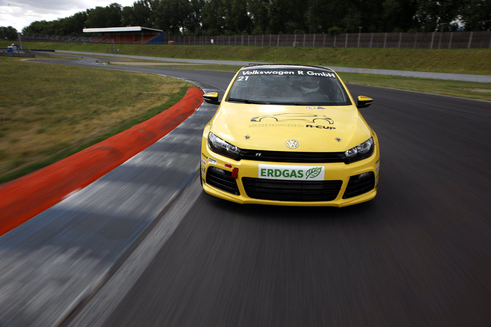 Wie sportlich ist der neue VW Scirocco R wirklich? Am Steuer der bis zu 275 PS starken Cup-Version konnte sich unser Redakteur vom Potenzial des Wolfsburger Coupés überzeugen. Spätestens mit Einführung des R-Modells wurde der neue Scirocco zum würdigen Nachfolger des verblichenen Corrado. Immerhin durfte der schon 1991 mit einem 190 PS starken 2,9-Liter-VR6 für Sportwagenfeeling im Kompaktsegment sorgen und die „Großen“ ärgern. Dass das dem 2010er Scirocco R mit seinem 265 PS leistenden Zweiliter-Turbo nun wieder gelingt, belegen sein Sprintzeit von 6,0 Sekunden auf Tempo 100 und immerhin 250 km/h Topspeed. Doch das Drohpotenzial der Straßenversion ist nur die halbe Wahrheit. Mit dem Scirocco R Cup zeigt VW nun zusätzlich, was das kleine Coupé auf der Rennstrecke zu leisten im Stande ist. Umgerüstet auf den Betrieb mit Bioerdgas und bestückt mit einer trickreichen „Push-to-pass“-Taste, donnern die VW-Coupés seit 2010 über die Kurse in Oschersleben, Hockenheim und Co.