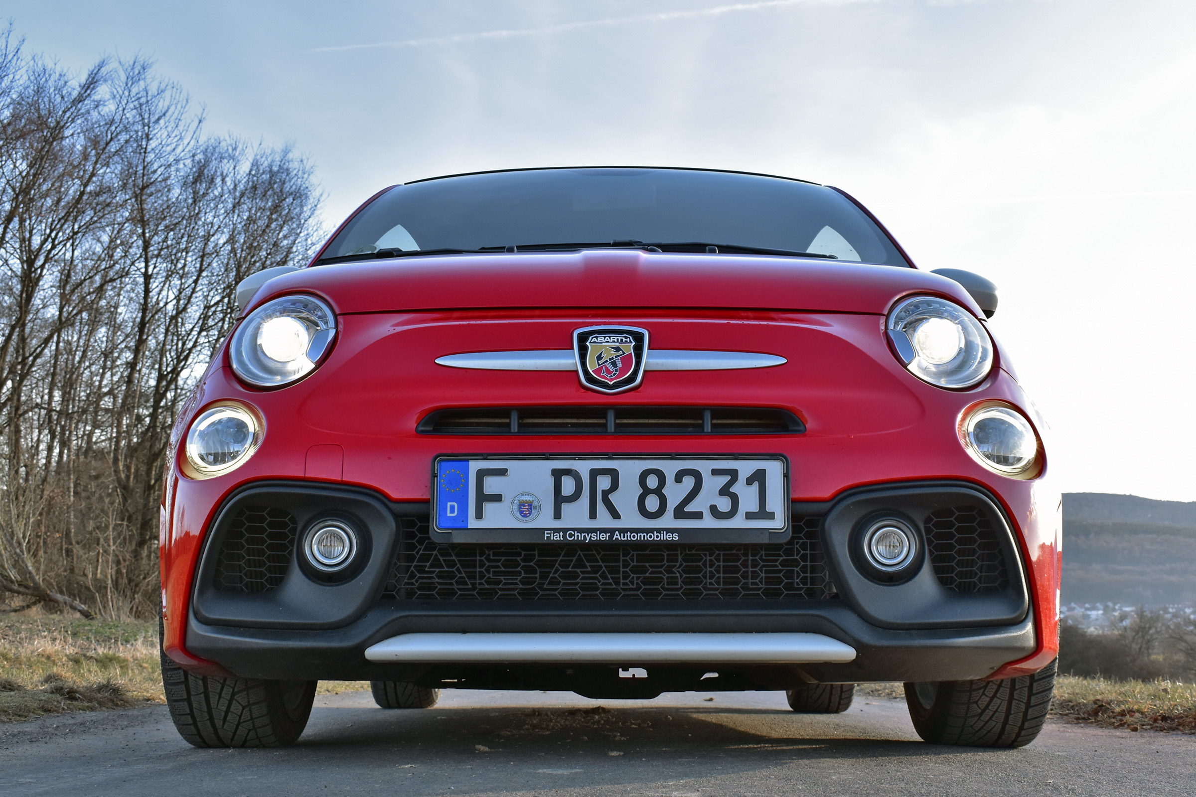 {1}Ja, er ist ziemlich klein, für seine Größe ziemlich teuer und die Sitzposition ist ziemlich hoch – um die drei Negativpunkte gleich vorneweg abzufrühstücken und hinterher kein Wort mehr darüber zu verlieren. Aber: man schließt ihn ins Herz. Irgendwann, wage ich zu behaupten, wird jeder seinen Schlüsselmoment mit dem Abarth 595 haben, so mancher sogar, ohne ihn je gefahren zu sein. Du kannst im von Luxuswagen geprägten Rhein-Main-Gebiet alles Mögliche fahren und wirst nicht einmal schief angeschaut – dem Abarth fliegen die Herzen zu. Selten wurden wir so oft positiv auf ein Auto angesprochen und haben selten so viele Fußgänger ins Auto reinschauen und dabei lächeln gesehen, wie bei ihm. Ein Abarth macht Freude.