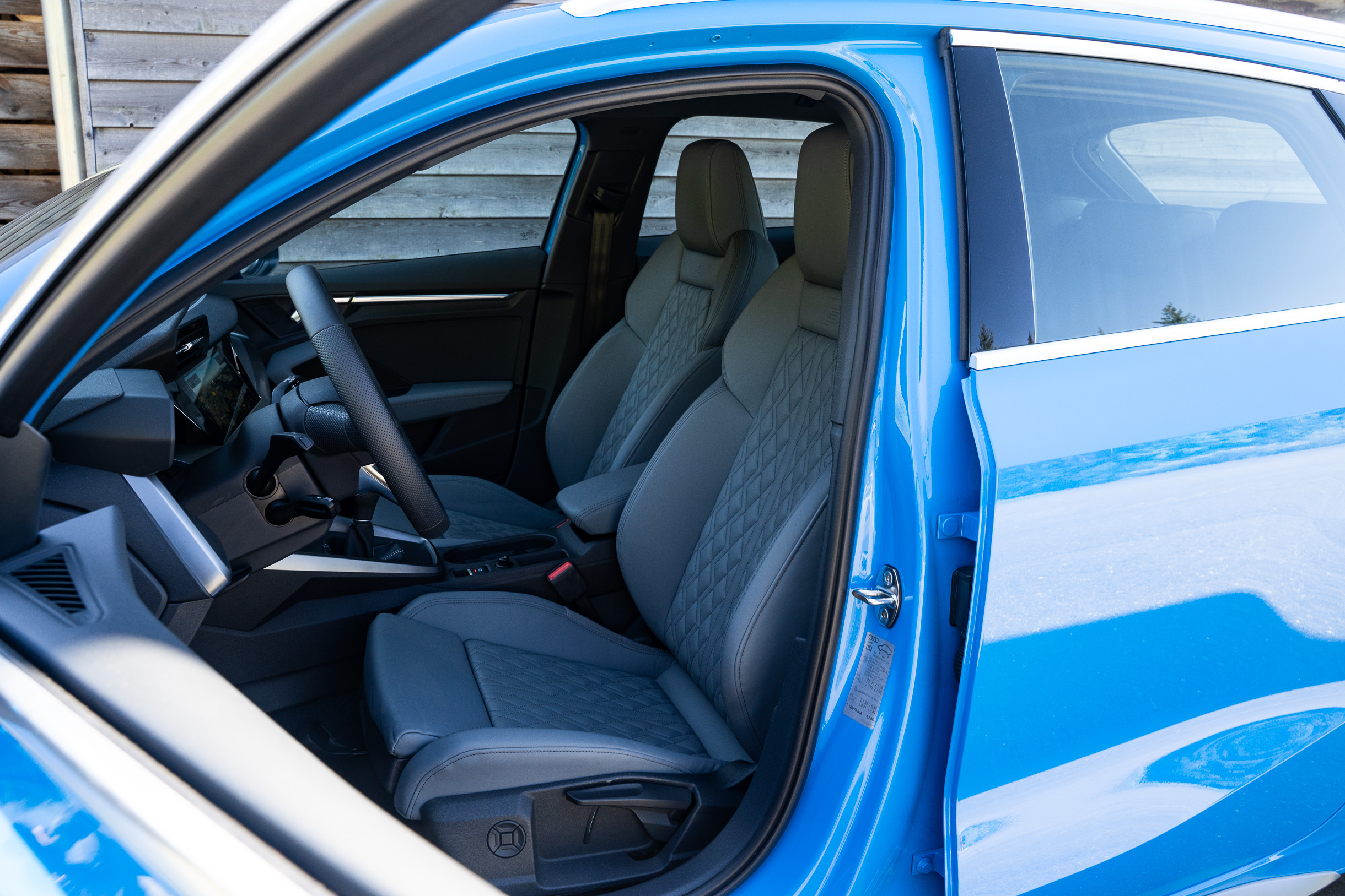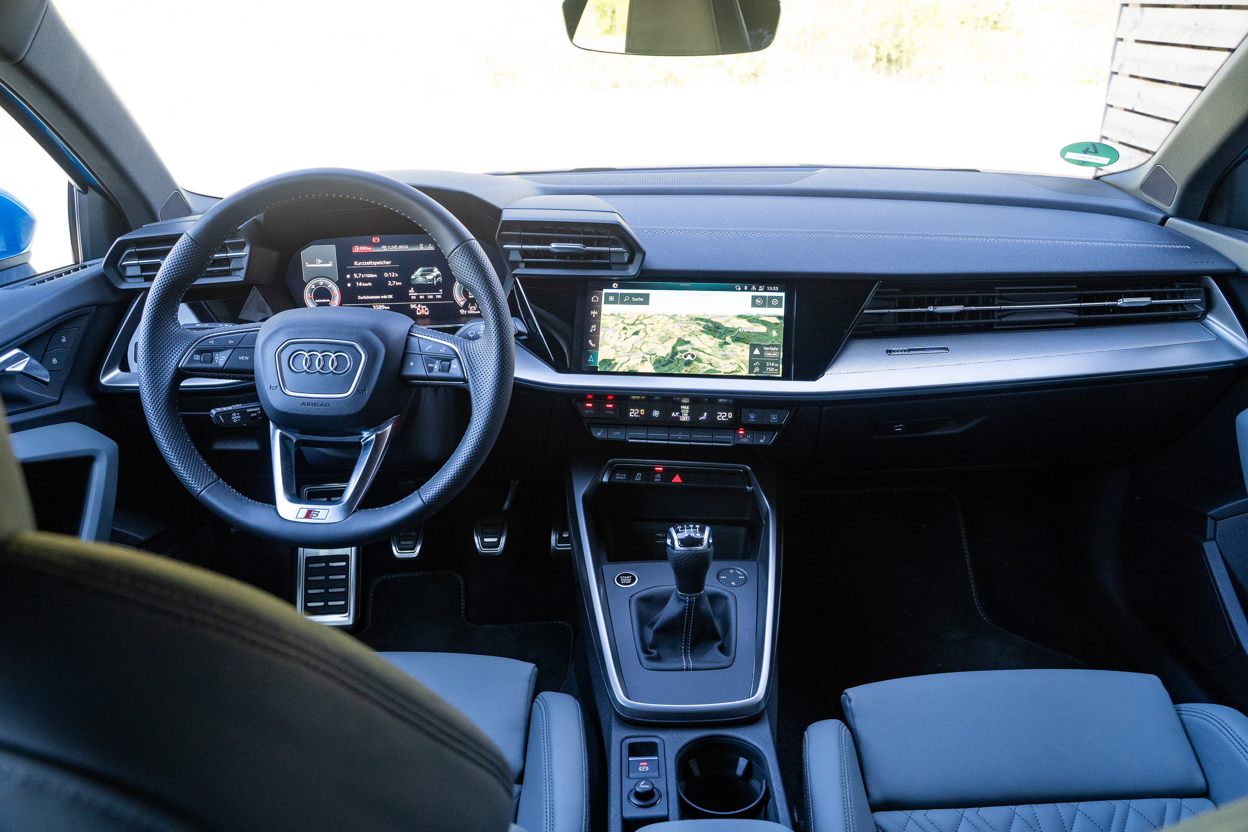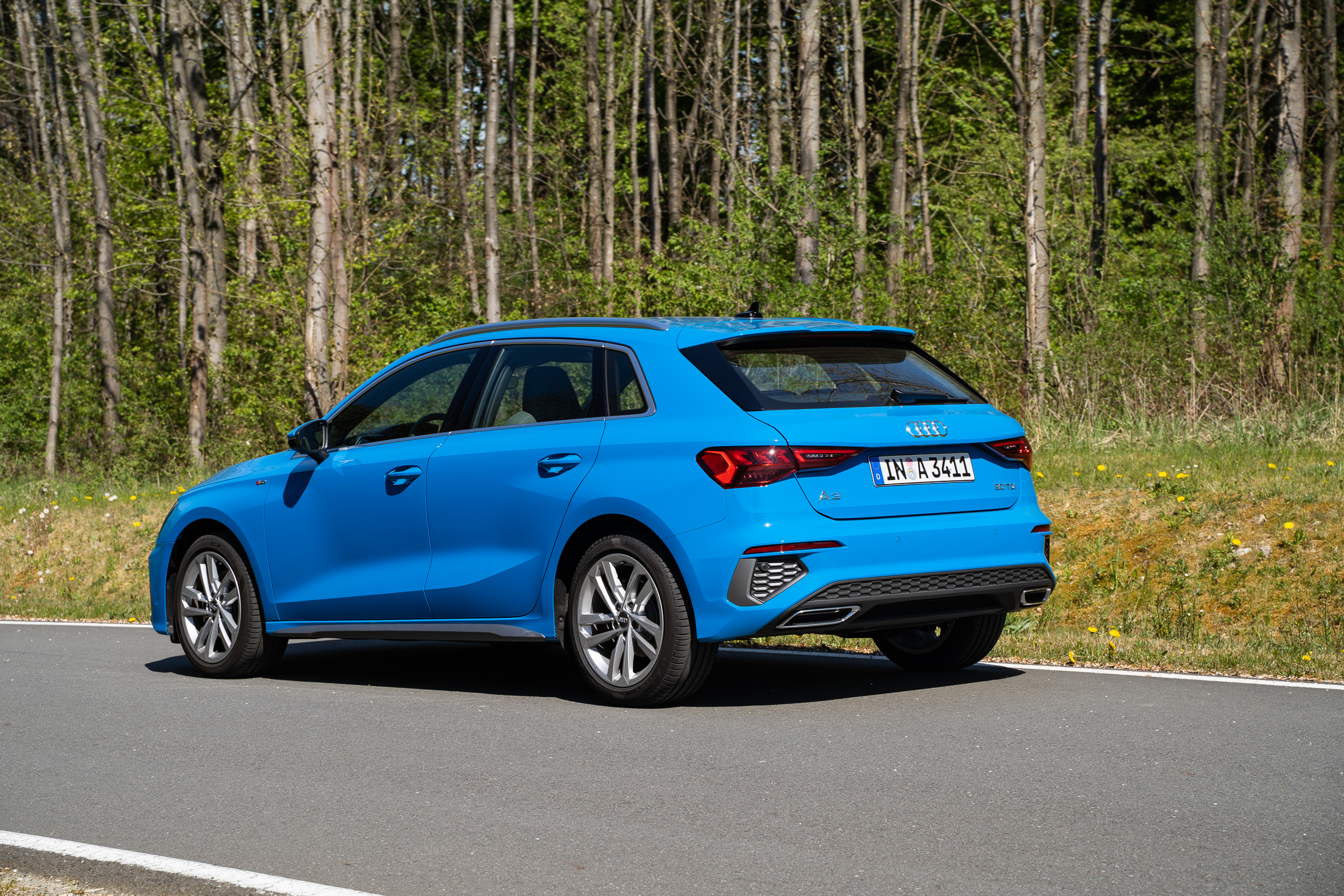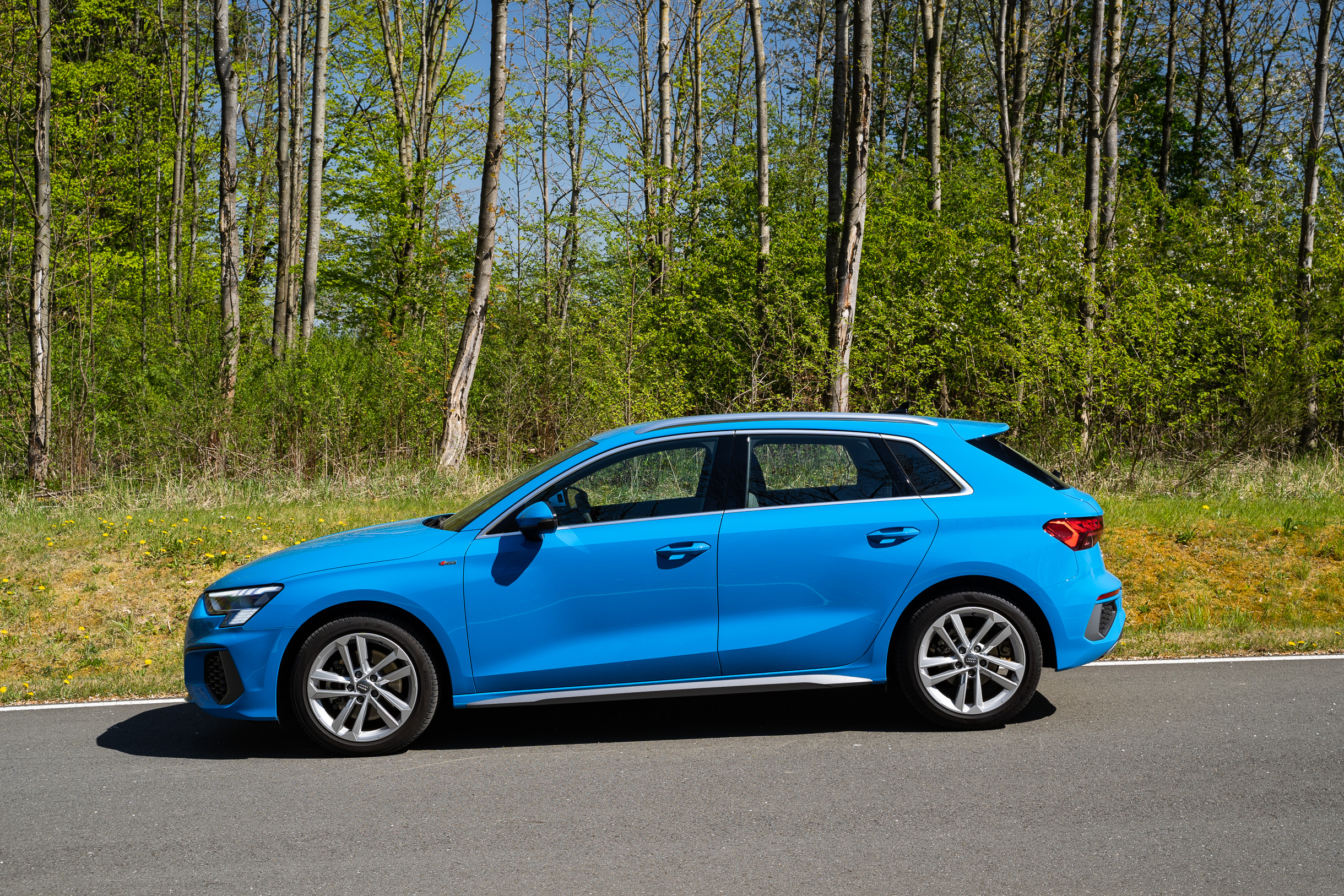 {1}Ansonsten fehlte es unserem feinen Bruder des neuen Golf 8 an nichts. Die sportliche S-Line steht der vierten Generation in Kombination mit 18 Zoll Alufelgen ausgesprochen gut. Trotzdem muss man genau hinschauen, um zu erkennen, dass es sich um den neuen Audi in der Kompaktklasse handelt. Doch beim zweiten Blick erkennt man: die Front ist etwas aggressiver, die Seiten eine Spur ausgeformter und das Heck ein wenig gestraffter.
