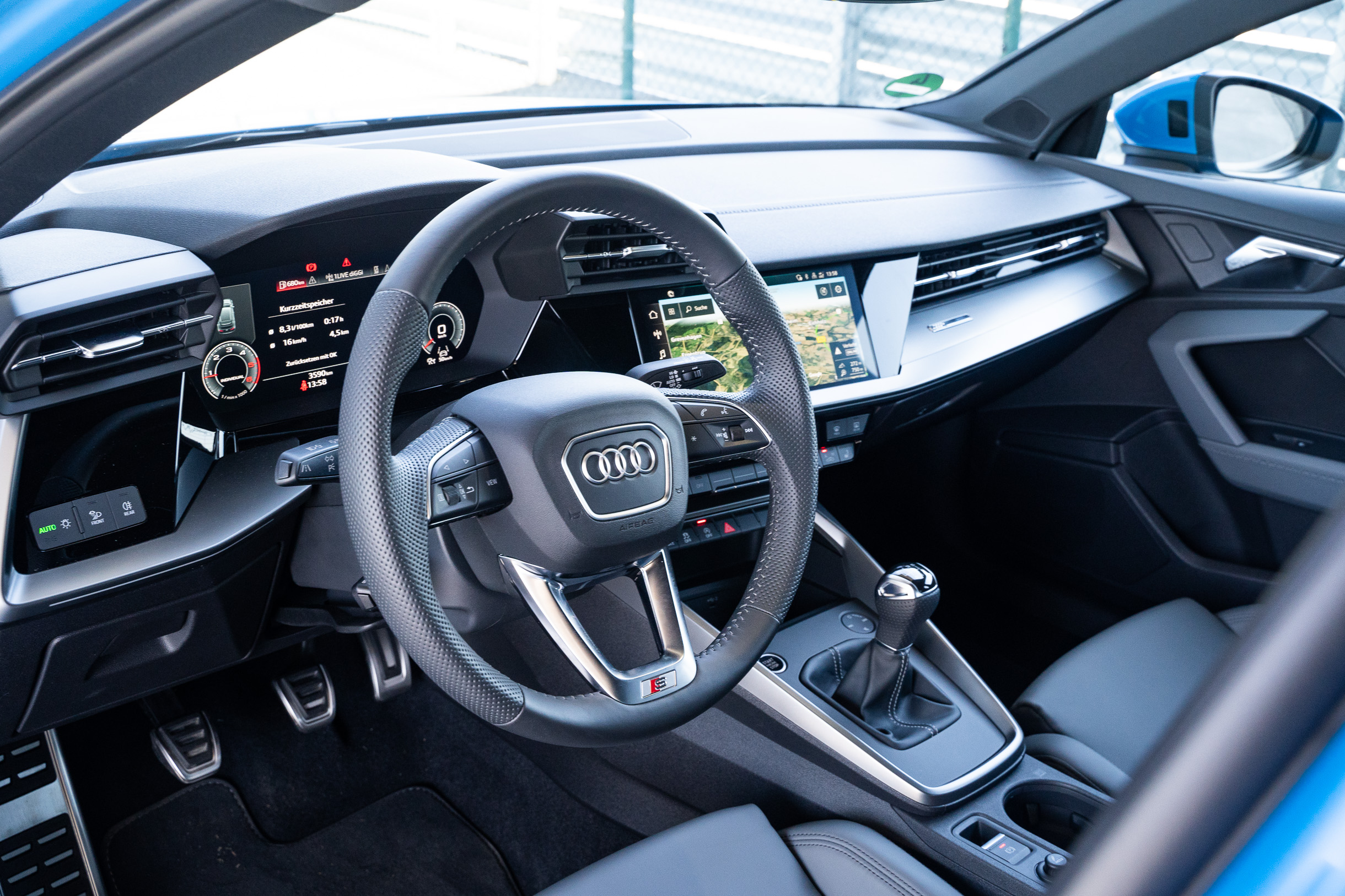 Doch auch das Cockpit glänzt mit einem bis zu 12,3-Zoll Display in Full-HD-Qualität. Damit lenkt Audi geschickt von der nicht mehr ganz so brillanten Materialanmutung ab, wie sie noch der Vorgänger besaß. Displays sind eben günstiger, als aufwendig aufgepolsterte und genarbte Kunststoffflächen. Doch kommen wir zum Fahreindruck. Hier kann der A3 die ganze stärke der der weiterentwickelten Plattform MQB evo ausspielen.